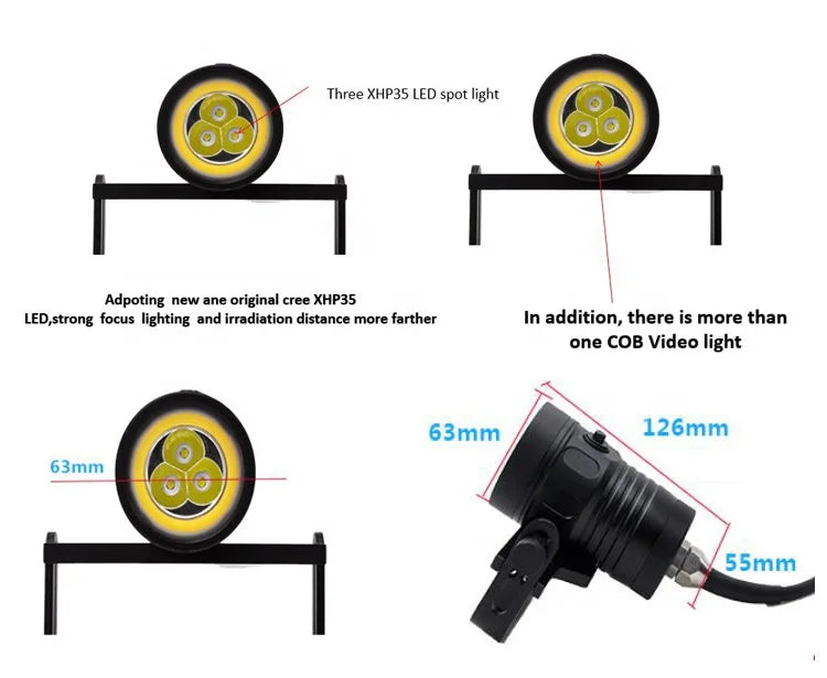 Professional Submersible Fishing Lights Underwater Caving Scuba Canister Diving Torch IP68 Waterproof Cob Led Flashlight