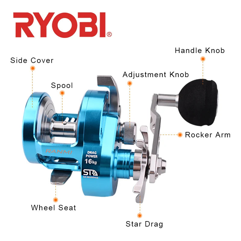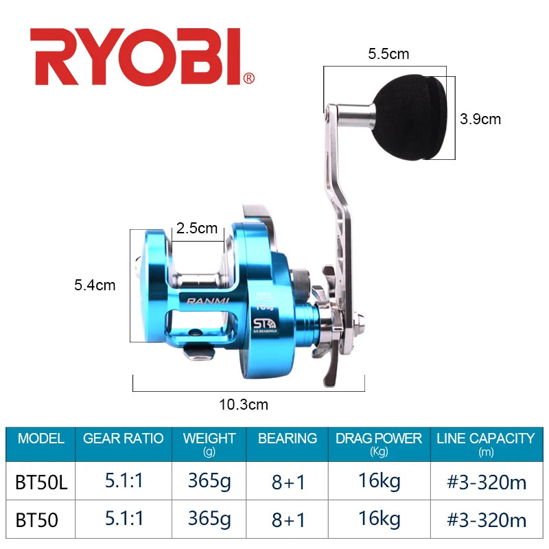 RYOBI RANMI JIGGER BT50 Slow Jigging Metal Tackle Big Game Fishing Wheel Max Drag 16KG Jigging Reel Fishing Reel