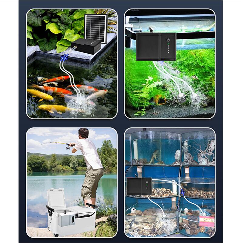 power will be automatically used when there is no sun, which can effectively prolong battery life; private model products, beautiful appearance, low noise, fine air bubbles, even oxygen, long battery life Long-lasting, fully charged for about 30 hours of continuous oxygenation, and about 55 hours of intermittent oxygenation; |