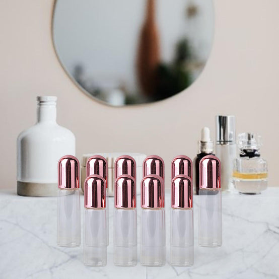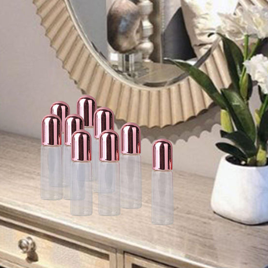 10x Essential Oil Roller Bottles Clear Glass Roll On Perfume Bottles Mini 5ml