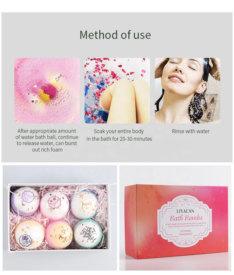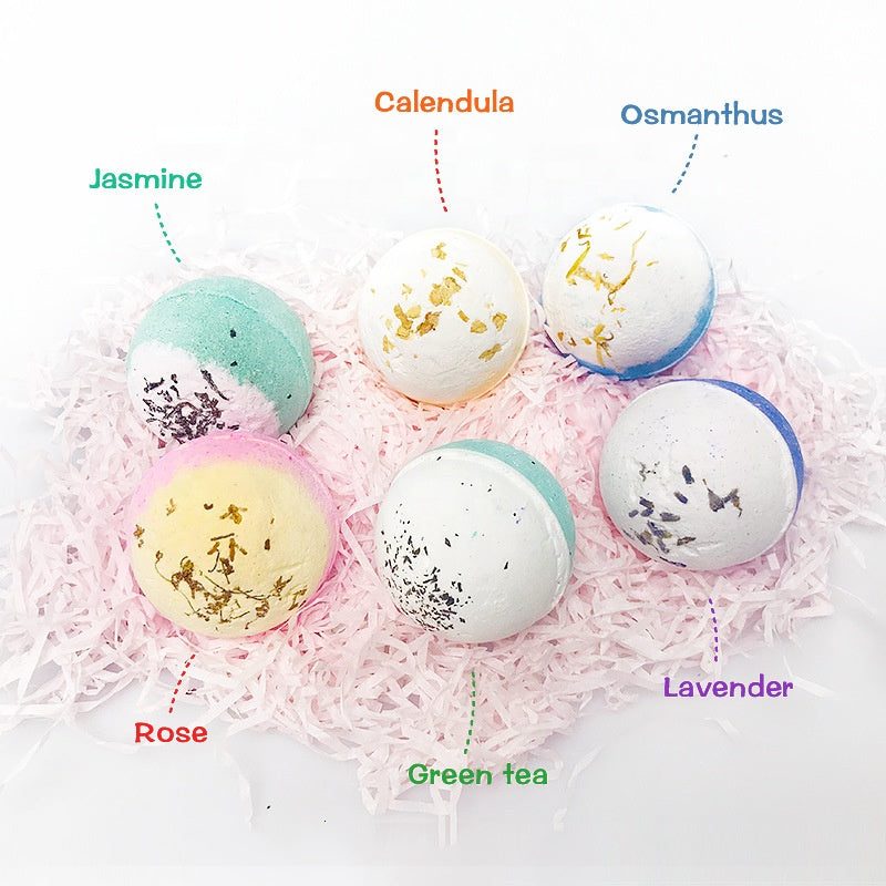 6pcs/set Dried Flower Explosion Bath Ball Natural Handmade Bathing Spa Essential Oil Moisturizing Bath Bombs Salts