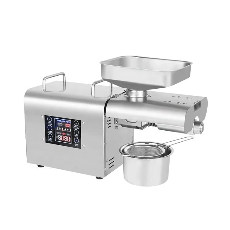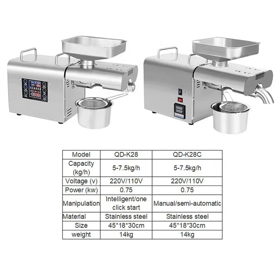 This oil press with cold and hot pressing function,fit for more than 20 kinds of materials: such as Peanuts,sesame,walnut,rapeseed,sunflower,soybeans,castor beans,pumpkin seeds,beans,watermelon seeds, moringa seeds,pinenuts,hazelnut kernels,almonds,etc.