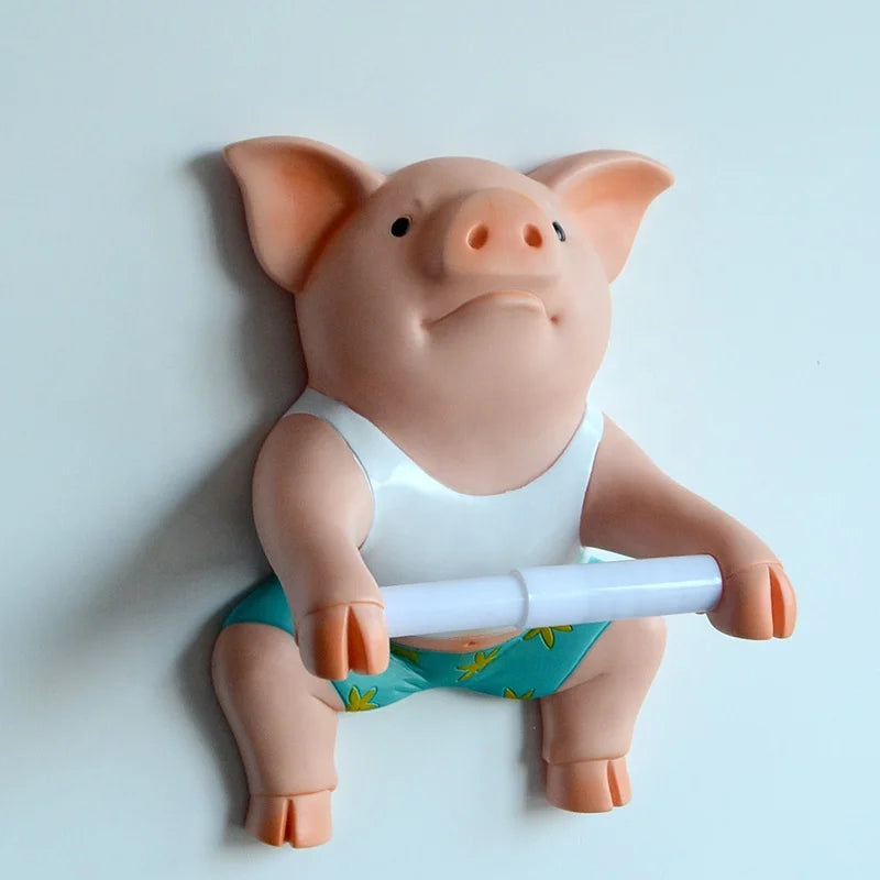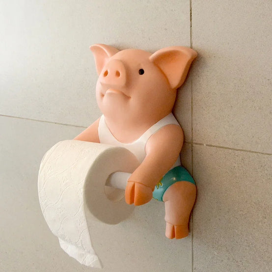 Cute Home Decor PVC Pig Toilet Paper Holder Punch-Free Hand Household Paper Towel Holder Reel Spool Device Bathroom Accessory