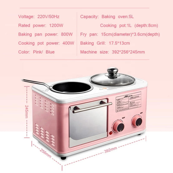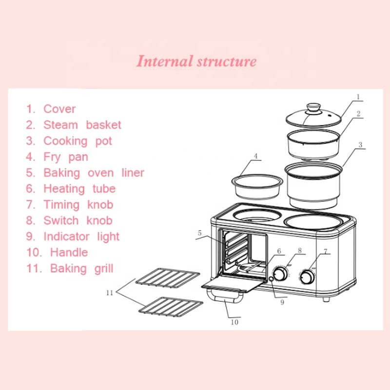 Electric 3 in 1 Household Breakfast machine mini bread toaster baking oven omelette fry pan hot pot boiler food steamer