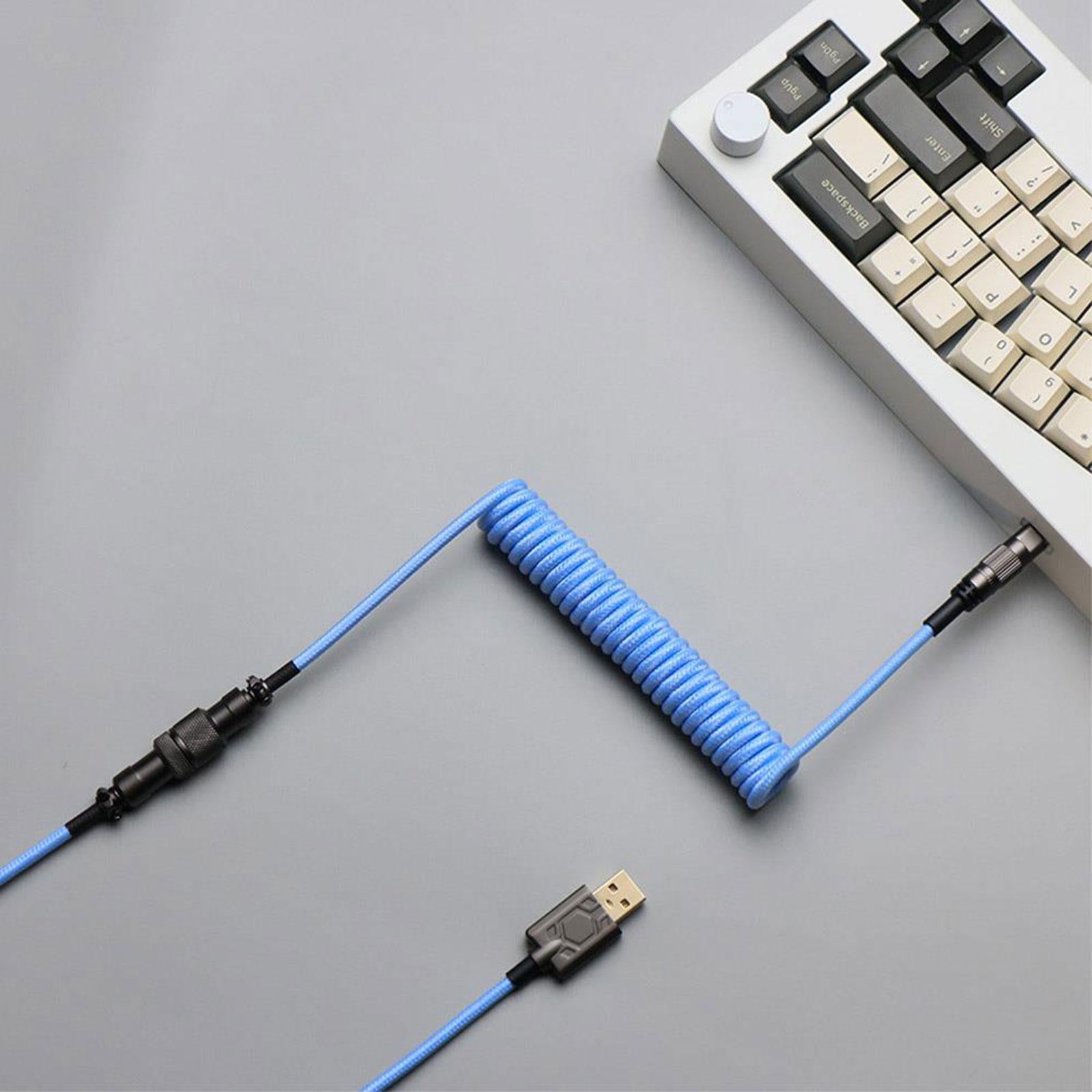 Mechanical Keyboard USB C Coiled Aviation Cable Length 5ft Accessory Stylish Blue