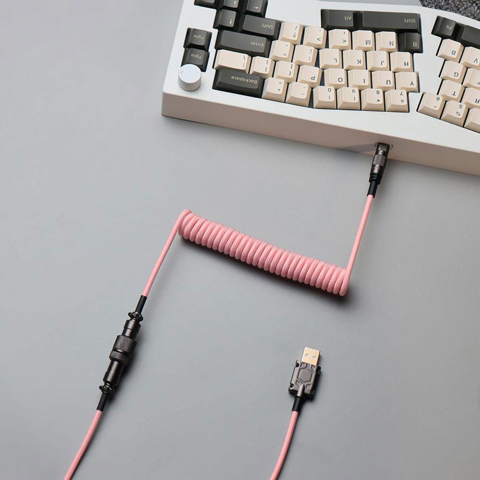 Mechanical Keyboard USB C Coiled Aviation Cable Length 5ft Accessory Stylish Pink