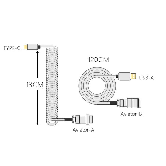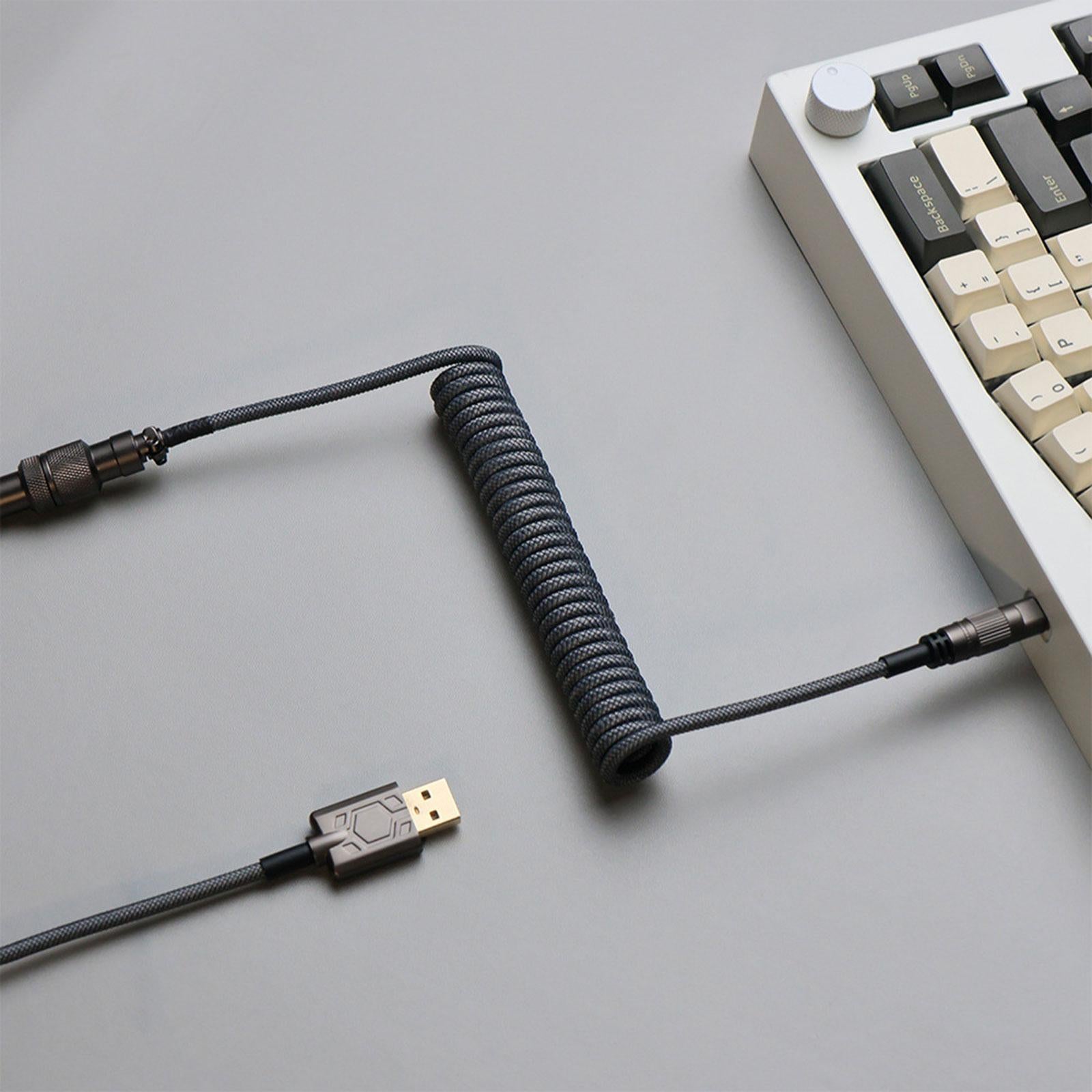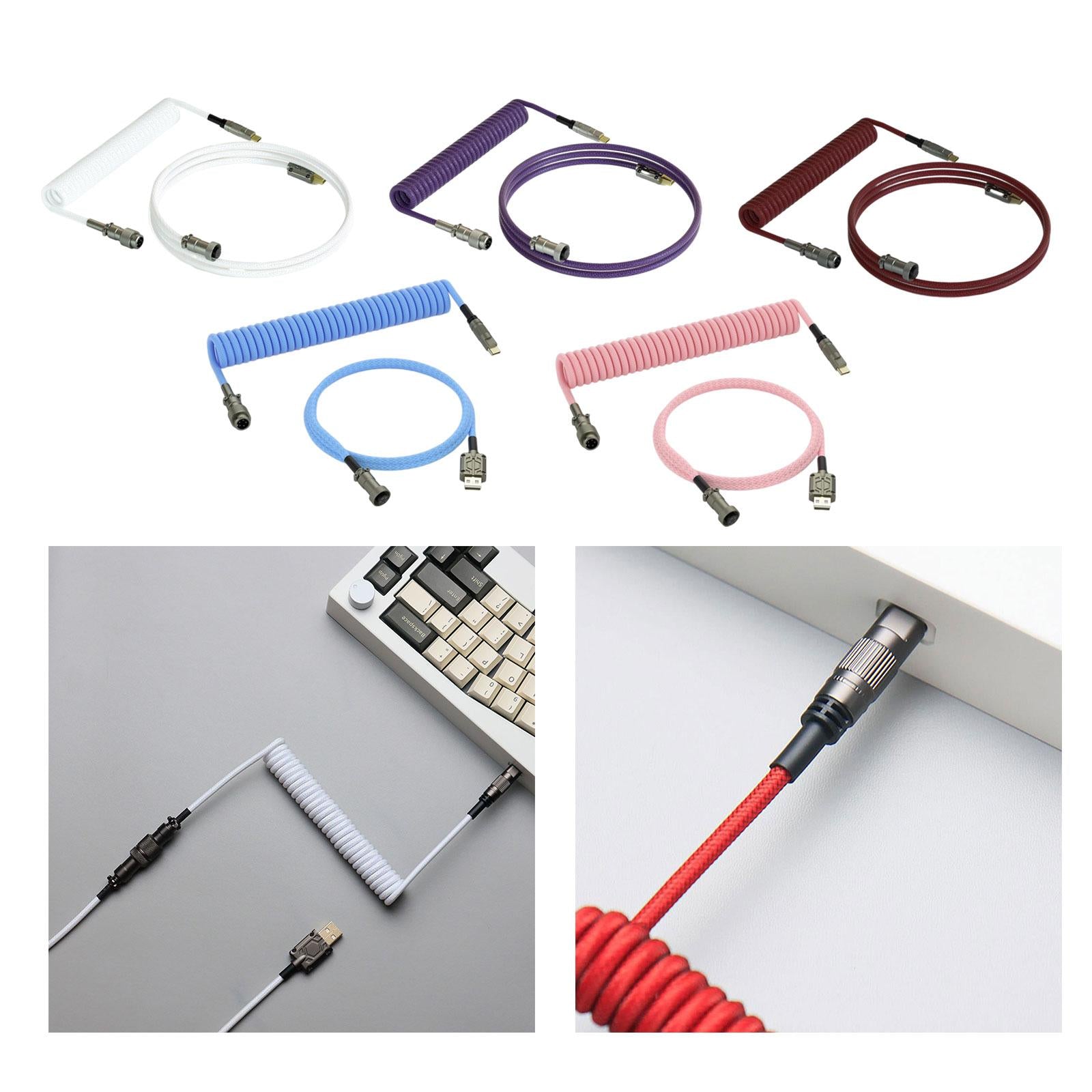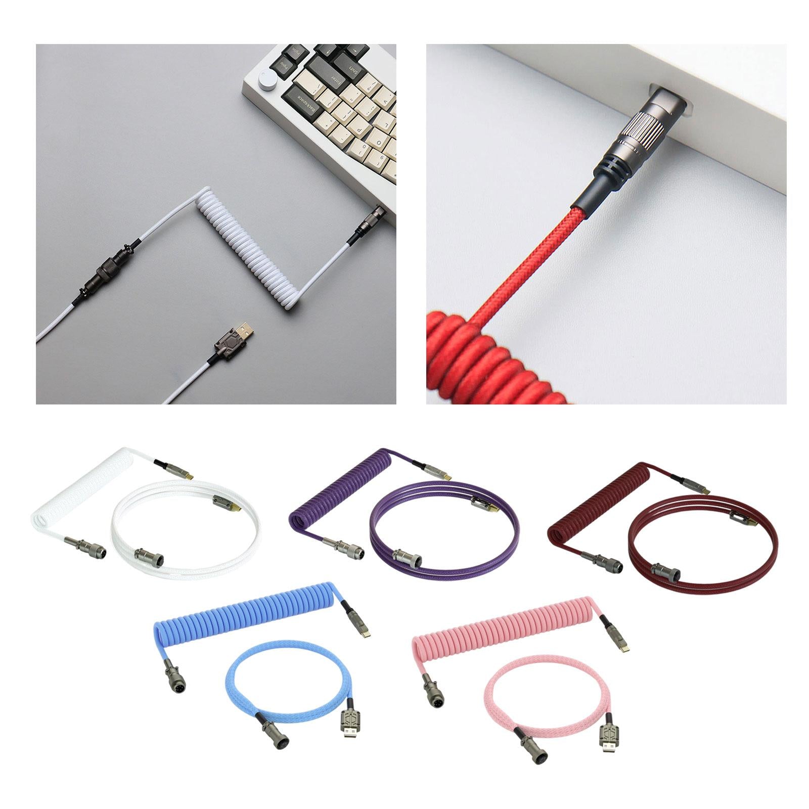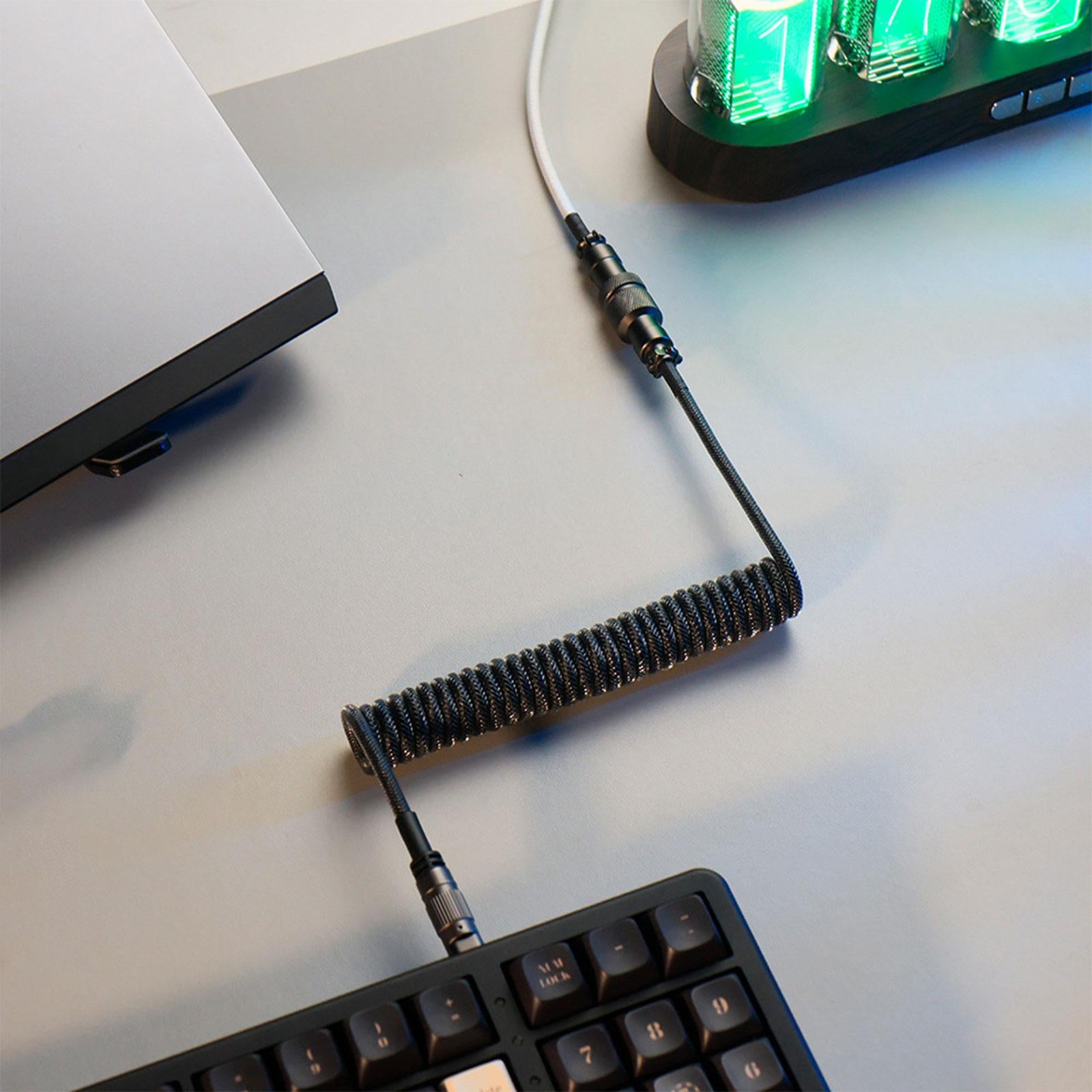 Mechanical Keyboard USB C Coiled Aviation Cable Length 5ft Accessory Stylish White