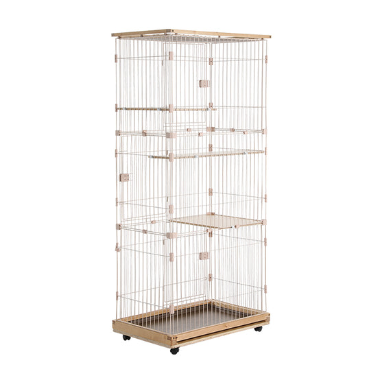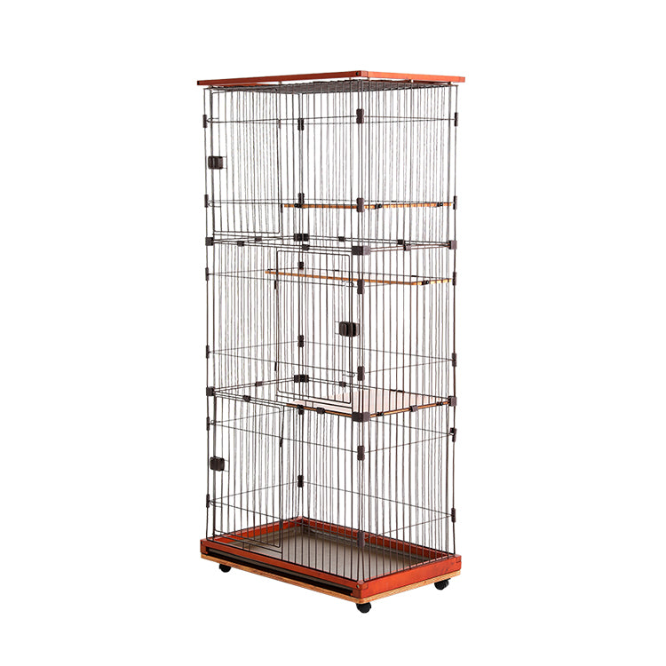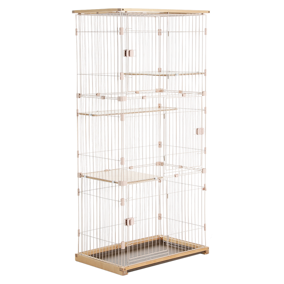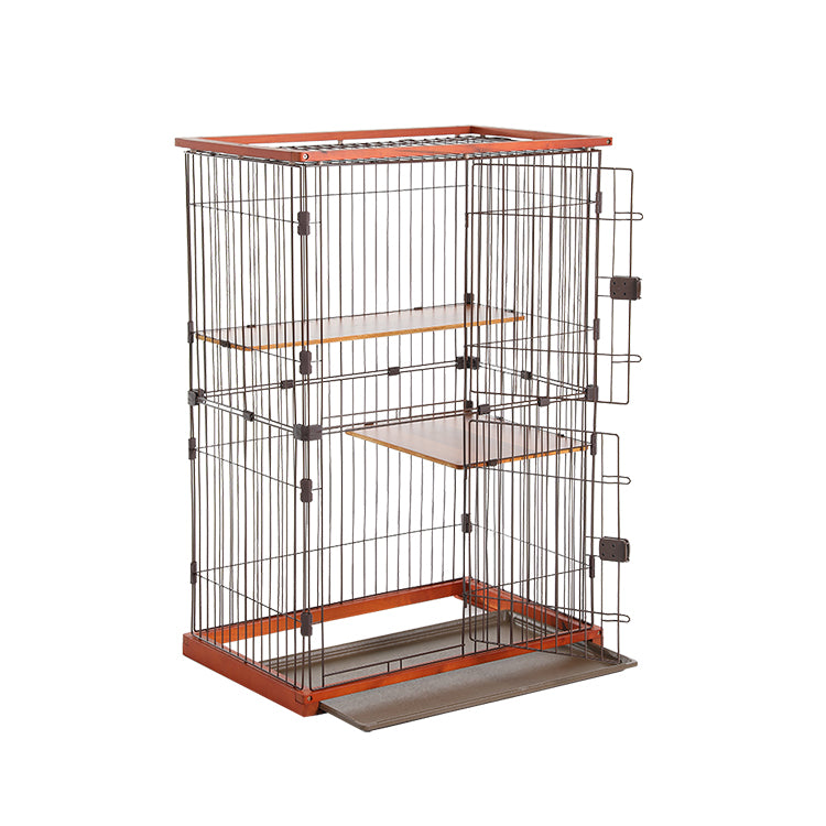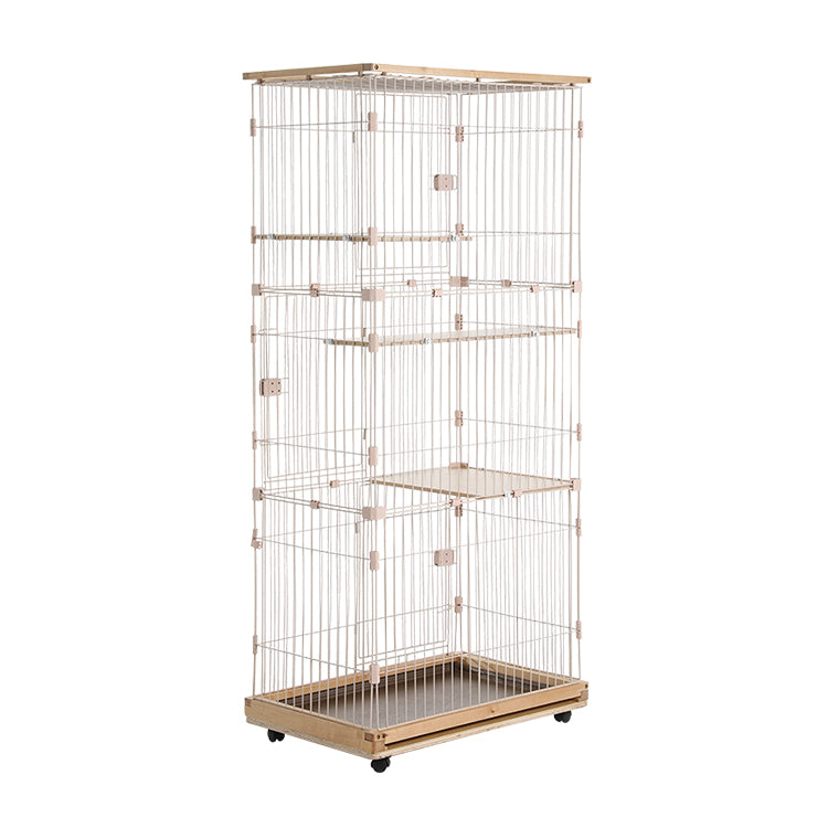 Metal Wire Cat Villa Cage Playpen Cages for Cats with Drawable Toilet Tray and Wooden Frames