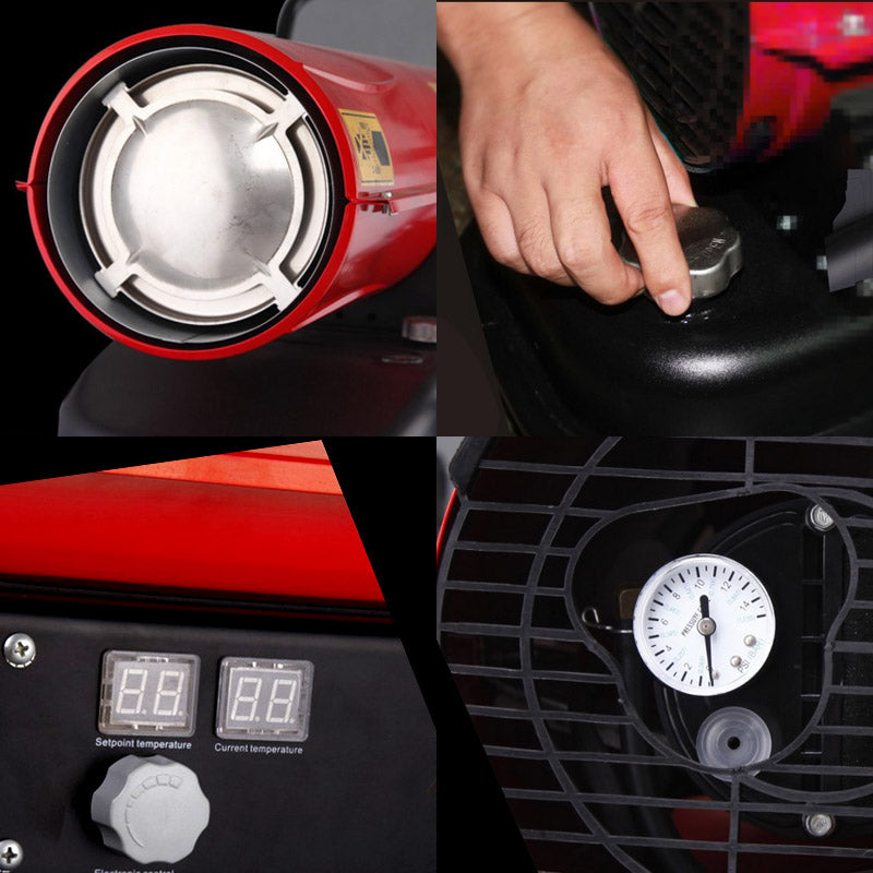 Chicken brood air heater machine using kerosene or diesel as fuel, the burning heat will be blow out by fan. Automatic electronic ignition, press button to start operation. And Equipped with flame failure protection and thermal protection device to ensure safe operation; have its self oil tank, no need to install and debug, easy to operation without to remould the circumstance; with a temperature controller, can set your needed temperature, can off heat or start heat automaticlly when its out of the temperature; with wheels and rails, small volume and light weight, canbe moved around easily.