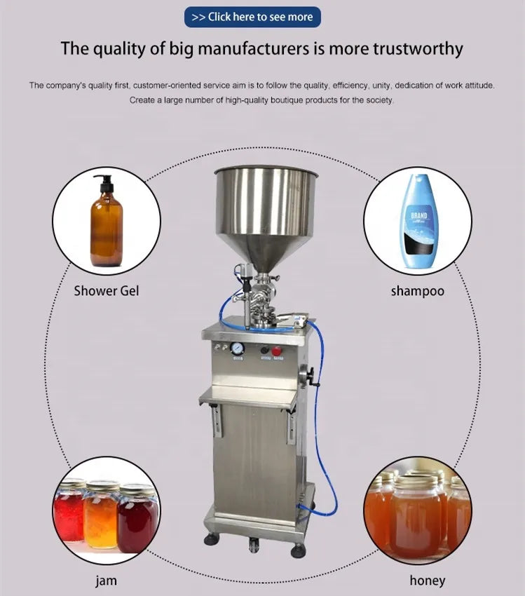 Our Semi automatic vertical piston-type filling machine is widely used in daily, chemical, medical, cosmetics, food, health care products, pharmaceutical, and other industries, according to the customers' very different products, our filling machine can do a great job in filling!