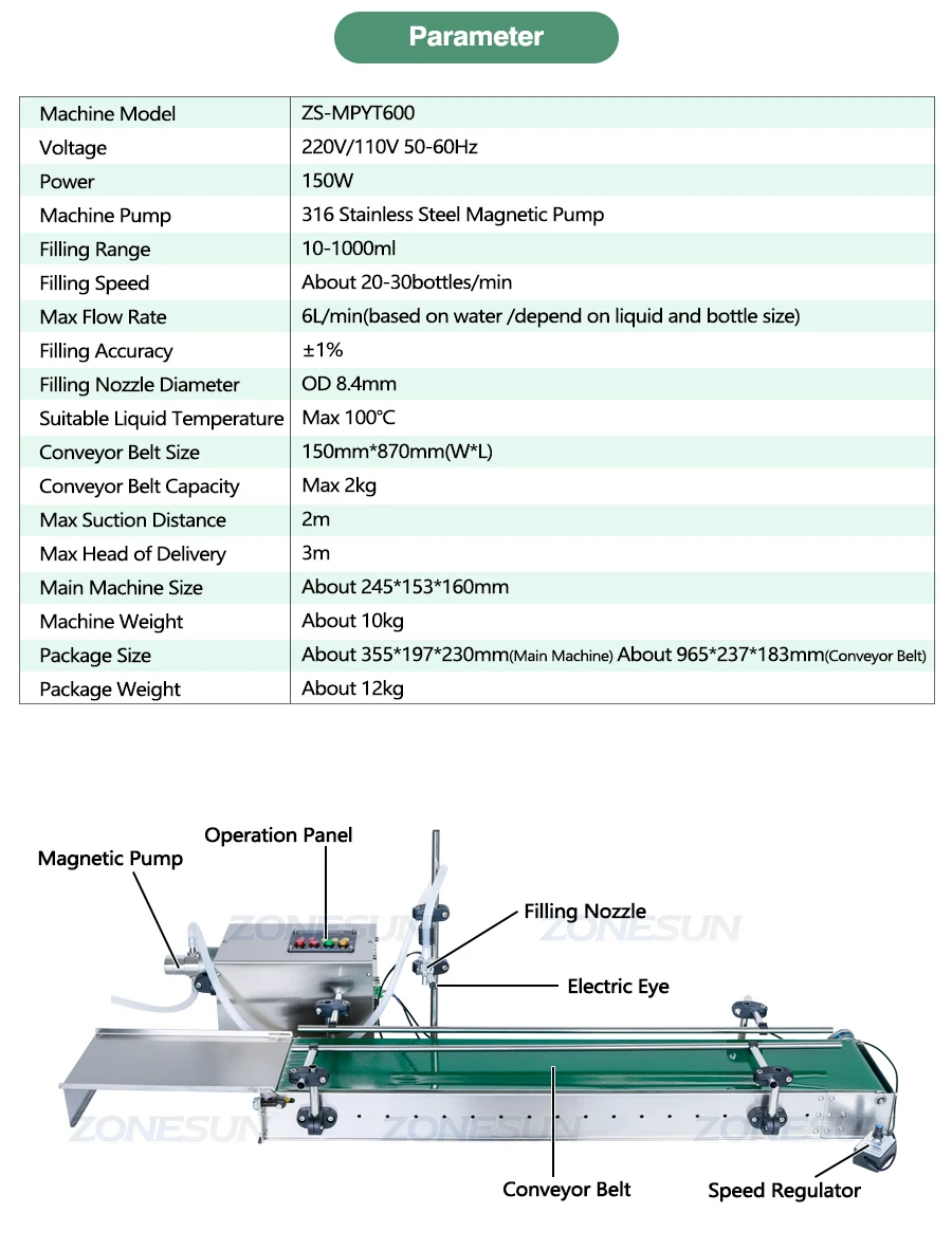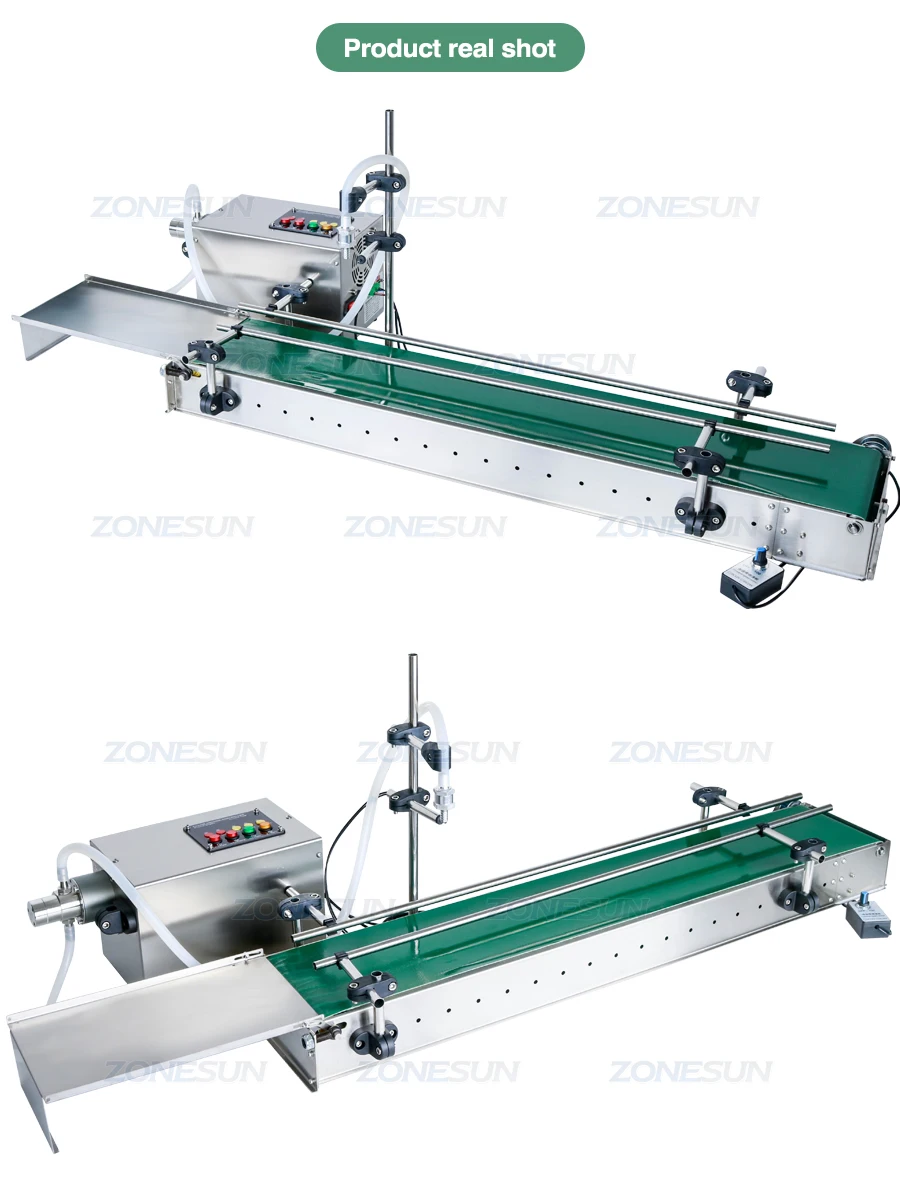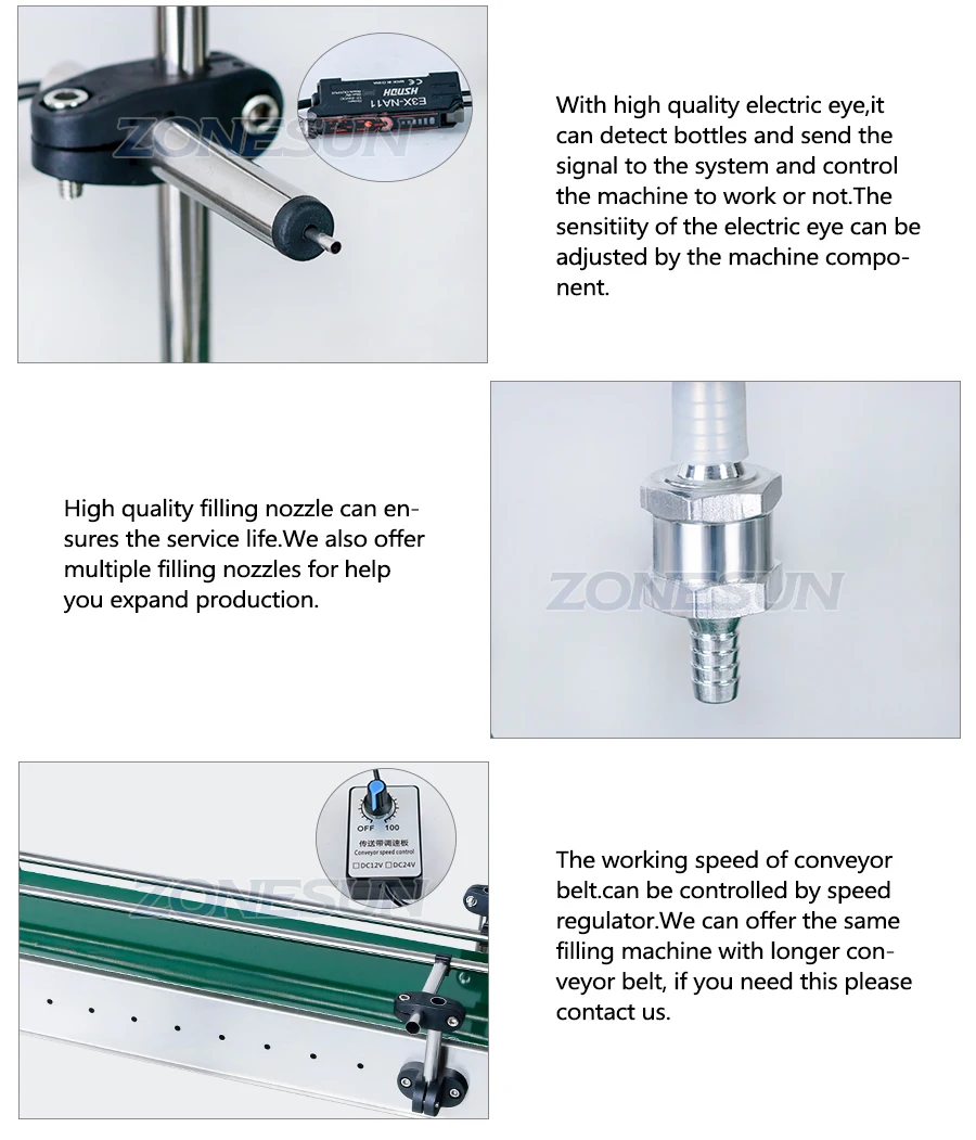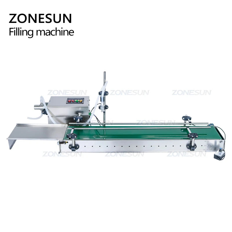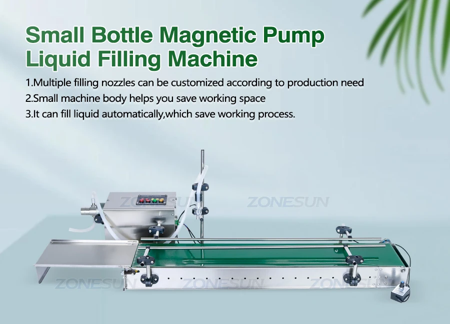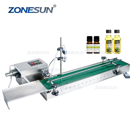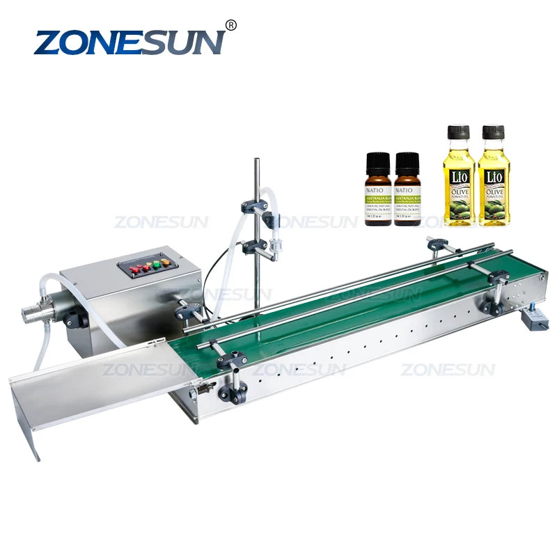 ZONESUN Magnetic Pump Automatic Small Glass Bottle Ink Vial Essential Oil Perfume Eye Drops Liquid Filling Machine With Conveyor