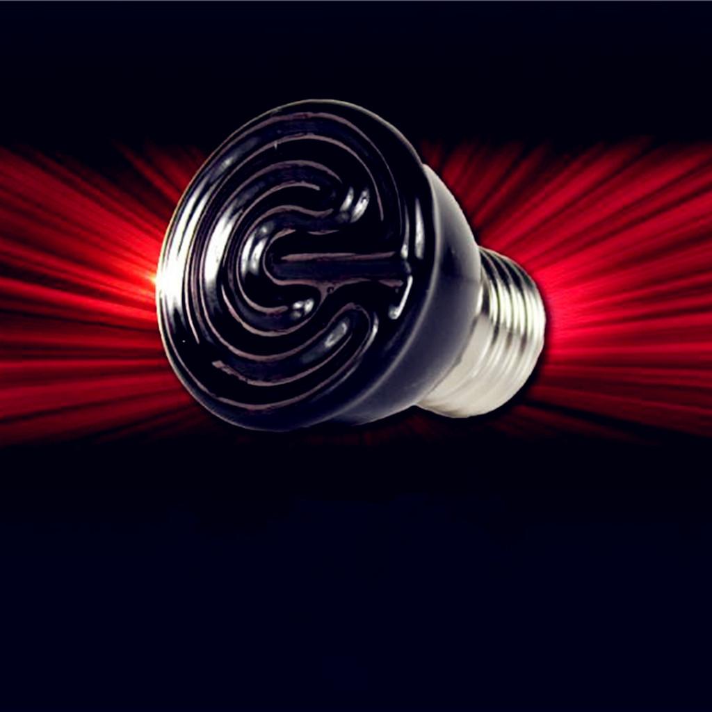 This black ceramic heat emitter bulb is the perfect 24 hour heat source for all reptiles. These porcelain heating devices screw into a standard porcelain incandescent socket, giving off intense muscle-penetrating infrared heat while emitting no light. The flat-faced design is more efficient and longer lasting than conical designs which build up excess heat internally ultimately carbonizing the element.
