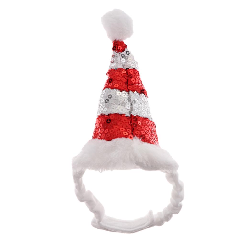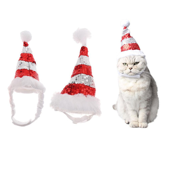 Trendy Retail Adjustable Pet Dog Puppy Cat Shiny Red White Striped Christmas Santa Hat for Pets Winter Party Clothes Xmas Costume Dress Up Size S
