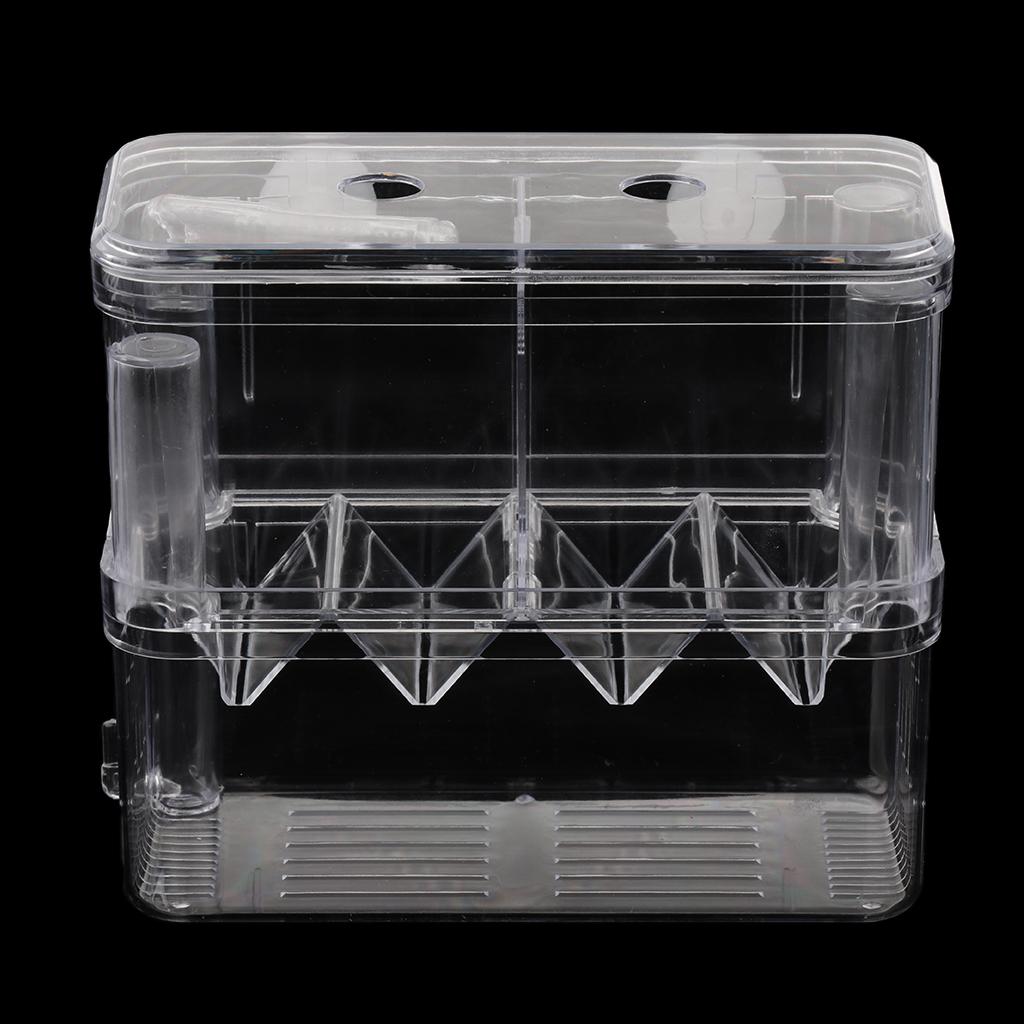 Transparent cover can prevent fish jumping out of the box, and the middle hole is convenient for feeding, it also can prevents adult fish to attack juvenile fish.