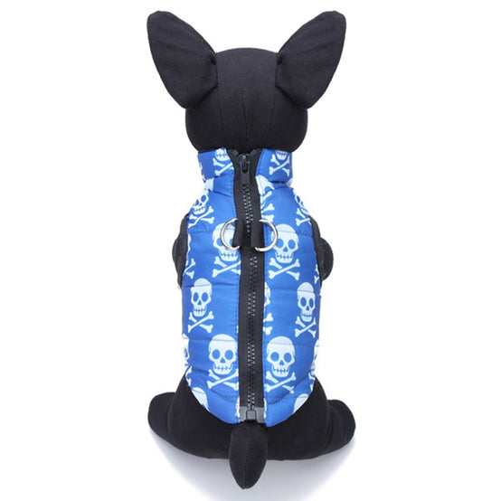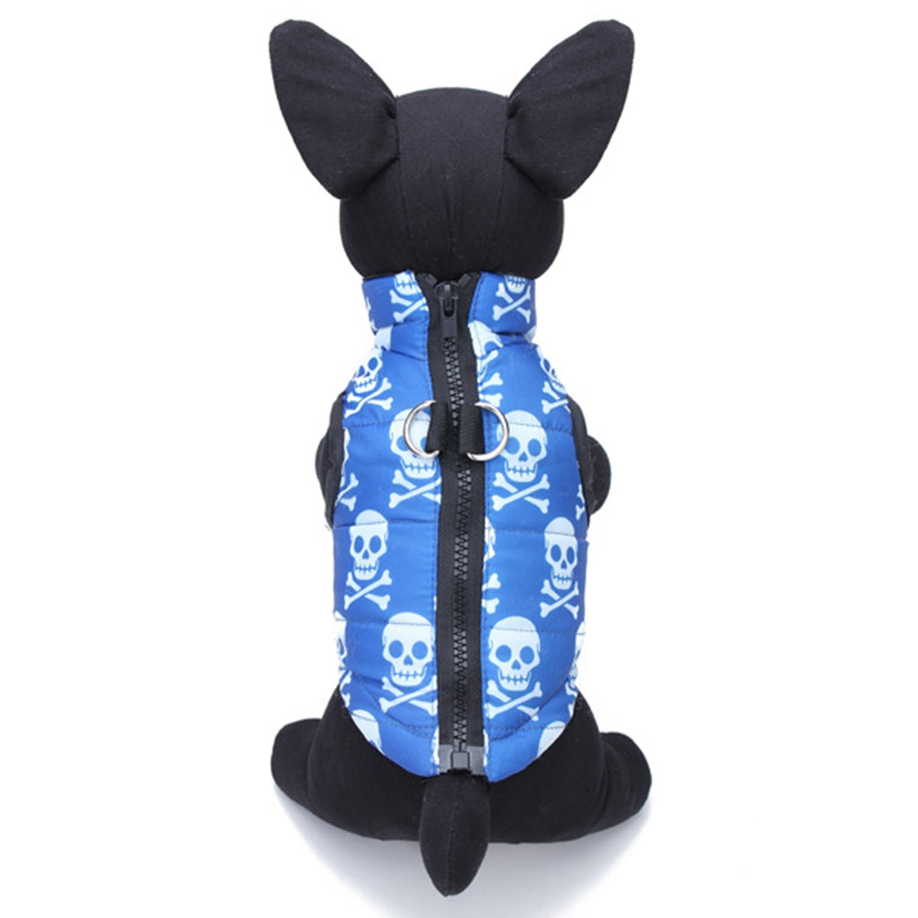 Trendy Retail Pet Dog Skull Pattern Charms Cotton-Padded Vest Clothes Coat Apparel Outfit Pet Winter Clothing Supplies Size M Blue