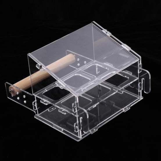 This small crystal-clear acrylic feeder is expressly designed for birds as small as finches and canaries to green cheek conures, parrotlets, and Lovebirds to cockatiels.