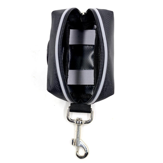 Attaches to leash with hooks & loops fastener straps - doesn't bounce around when walking your dog