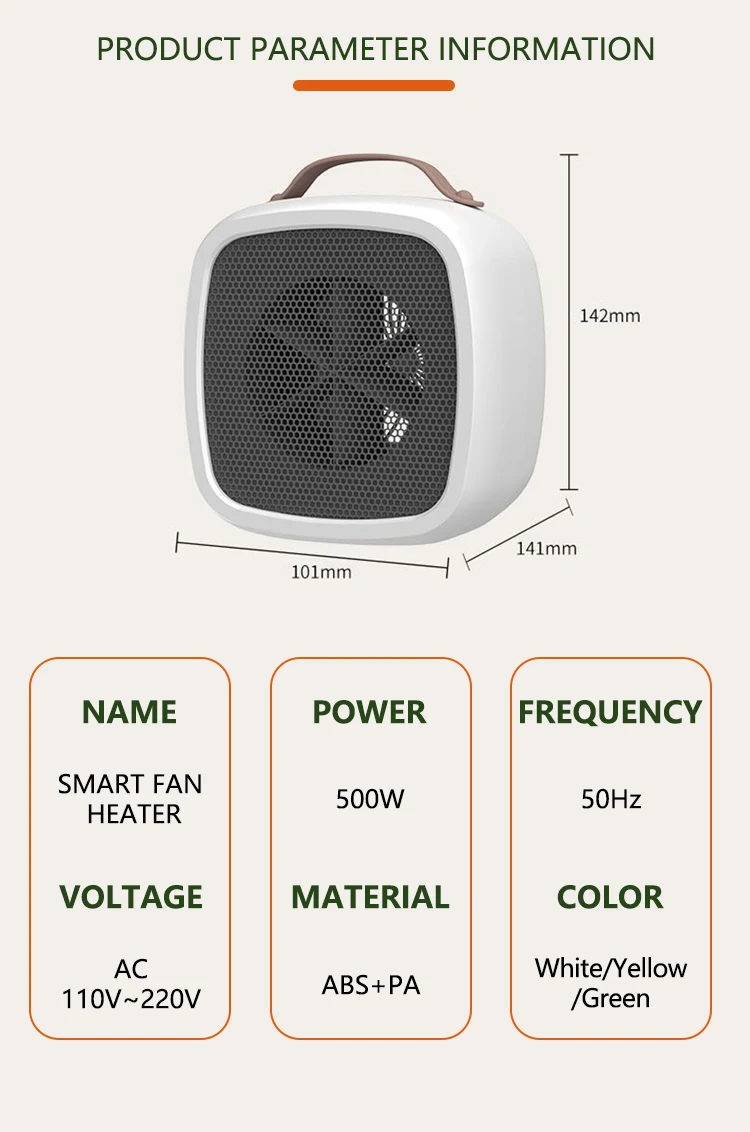 2022 Energy Saving Handy Plug in Rechargeable PTC Mini Room Space Infrared Portable Electric Fan Air Heaters for Winter Home