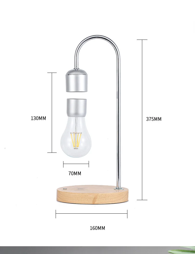①Volley spin Rotate under the action of electricity to make the floating bulb more beautiful ②Power failure protection When there is no electricity, the bulb is attached to the base, so there is no need to worry about the floating bulb falling and breaking ③Energy saving and environmental protection Magnetic levitation bulbs only need 1.44 per month and can be energized 24 hours a day ④Wireless charging Our floating light bulb not only transmits wirelessly and emits light, but also can be charged wirelessly.