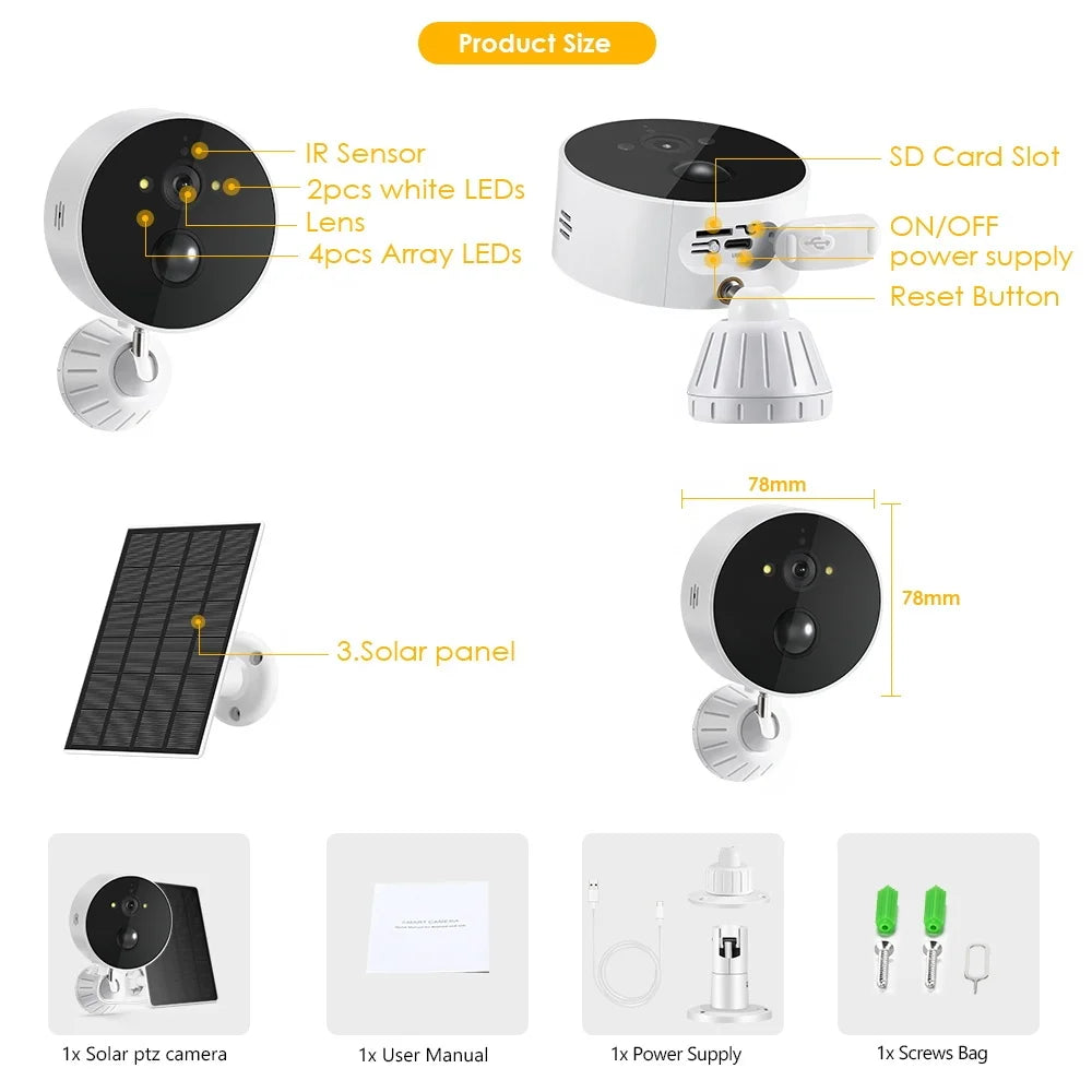 BESDER Small Outdoor Wifi IP Home Security Solar Camera 1080P Waterproof IP66 Two Way Audio Solar CCTV Wireless Camera