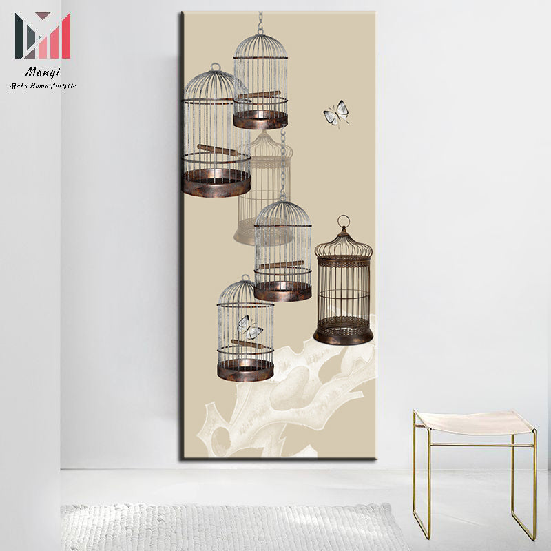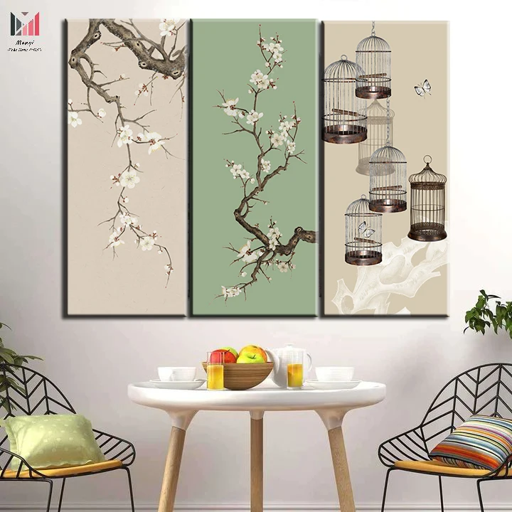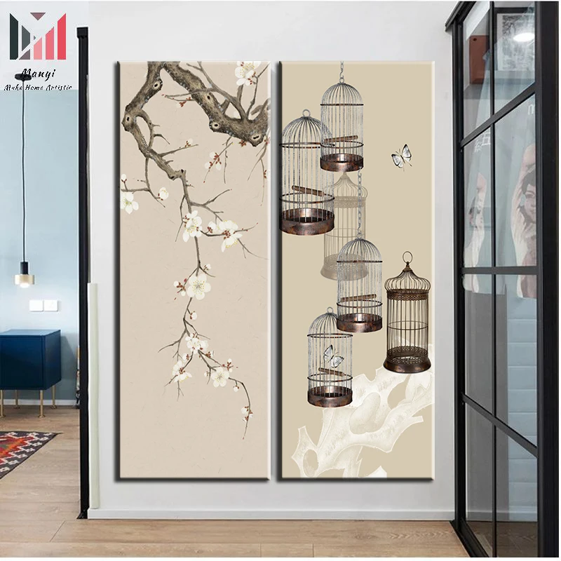 Chinese Style Retro Landscape Painting Wall Art Plum Blossom Bird Cage Pictures and Prints Canvas Painting For Home Room Decor