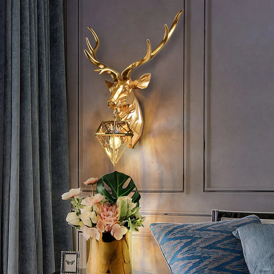 Creative Nordic Antler Wall Deer Lamp for Bedroom Kitchen Lights for Home Decor Antique rustic country village led golden resin