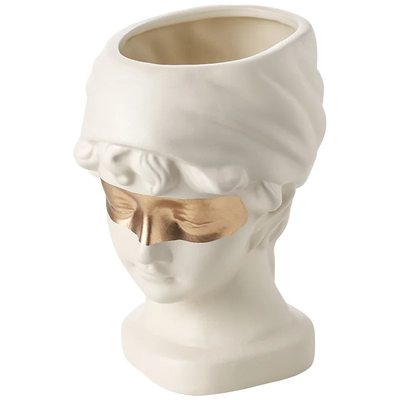 Greek David Head Statue Sculpture Head Planter Flower Vase Pen Makeup Brush Holder Flowerpot Home Garden Plants Planting Ceramic