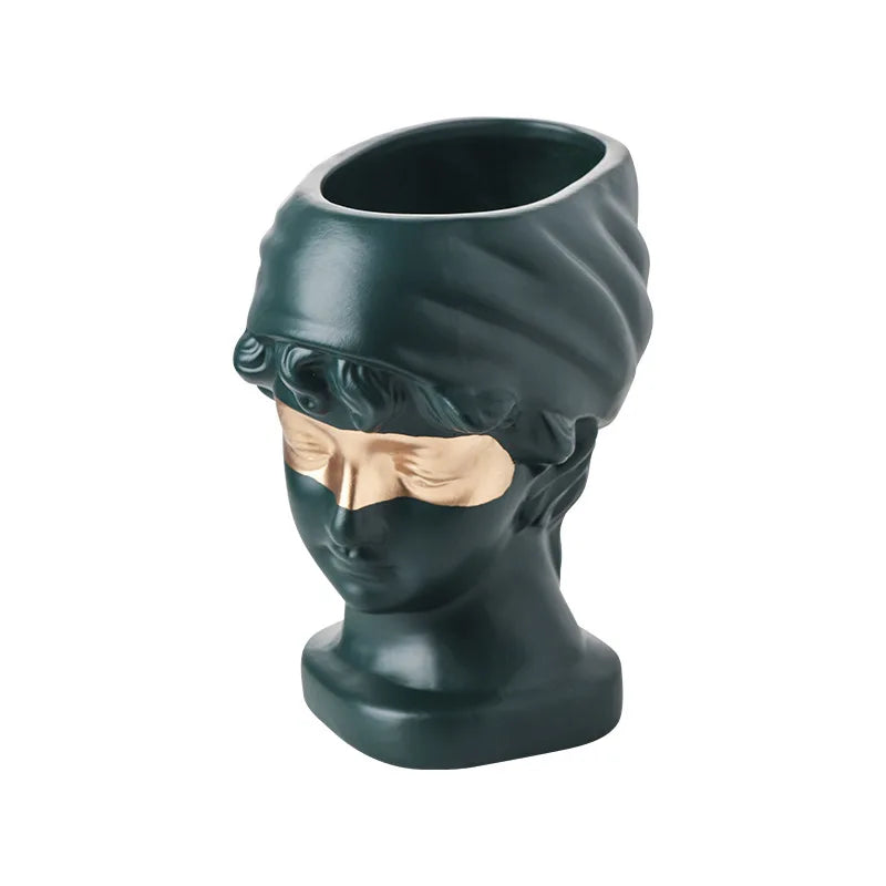 Greek David Head Statue Sculpture Head Planter Flower Vase Pen Makeup Brush Holder for Garden Home Decor