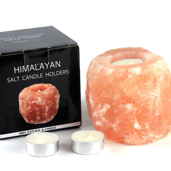 * GENUINE HIMALAYAN SALT Made of genuine pink Himalayan salt, these tea light holders are sourced from Pakistan and cut to the perfect shape. They are handcrafted and each have their own unique shape, resulting in no two candleholders being exactly the same size and color.