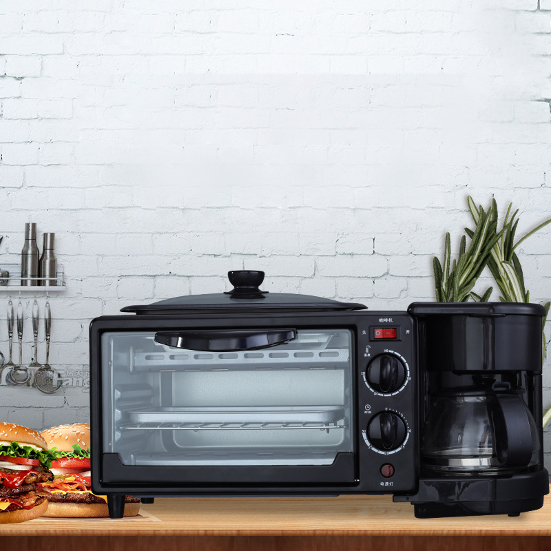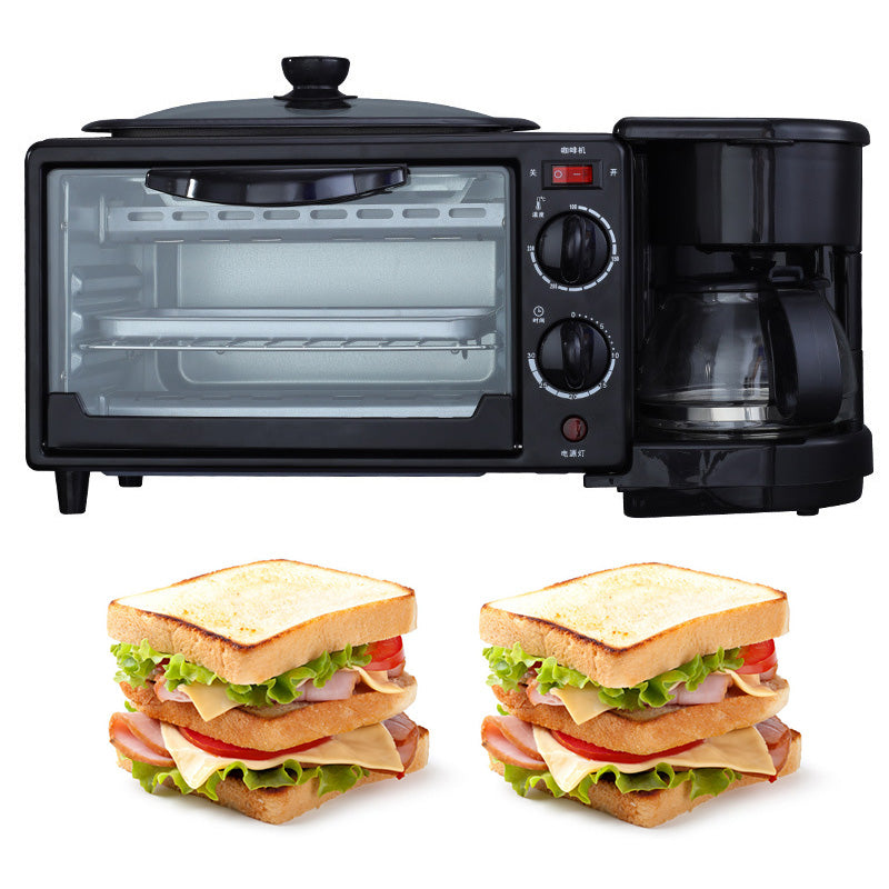 Home Breakfast Machine back Stainless steel 22V Oven+Coffee Pot+Frying Pan 3-in-1 Multi-function Electric Breakfast Maker Set