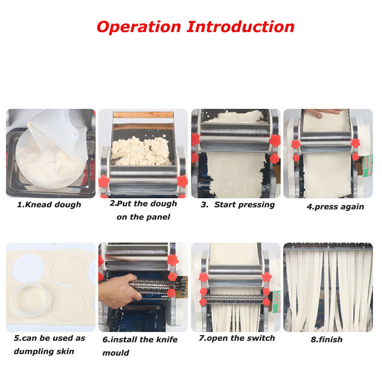 The noodle machine is a device that squeezes the flour through the noodle rolls to form the necessary tenacity and humidity to form noodles.The noodle machine is easy to operate, safe and hygienic, and suitable for eyes. The transmission is stable, the transmission power is accurate and efficient, and it has the characteristics of low noise, no vibration, and superior performance. It can be equipped with small drying equipment.