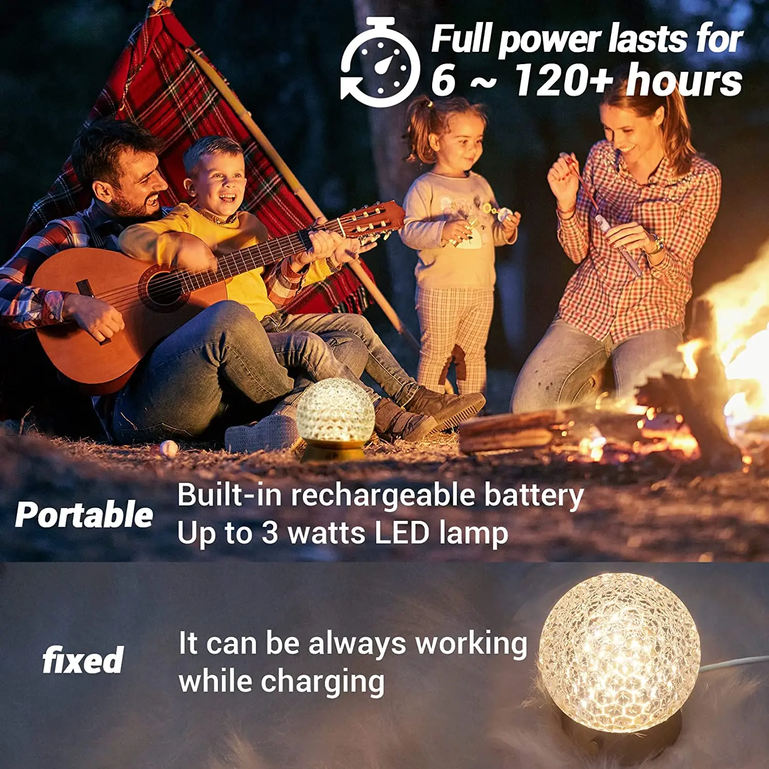 and up to 120 hours(minimum brightness at all times with the warm or cool light mode). It can be always working while charging.