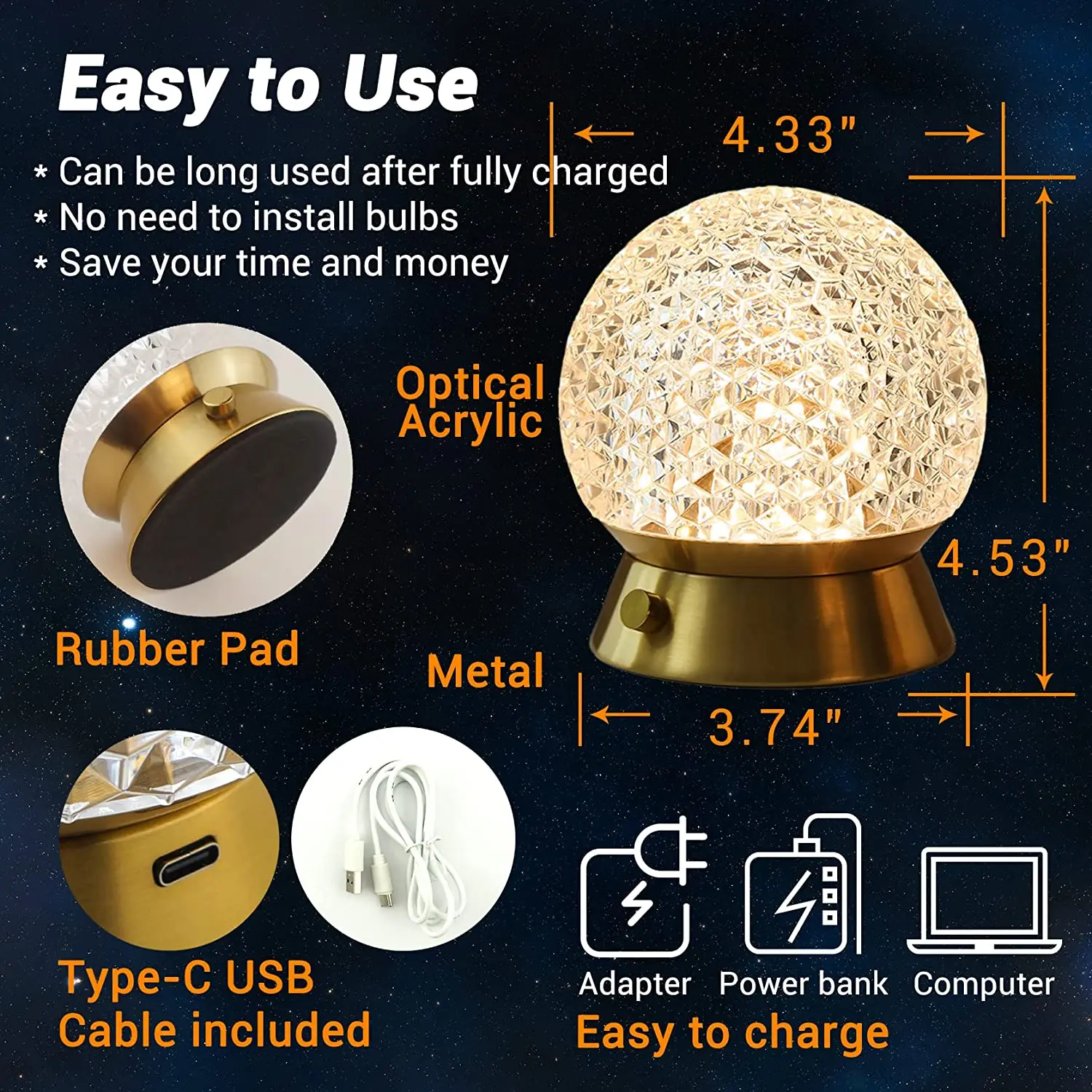 This lamp can be charged by the type-C USB port from any equipment such as wall outlet, laptop or portable power source.Please
