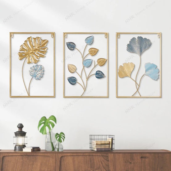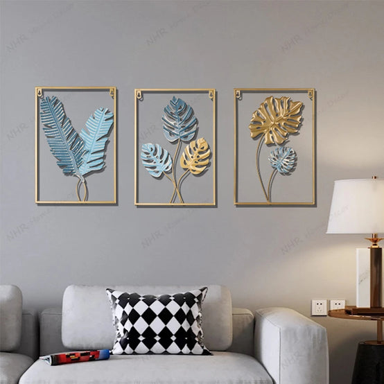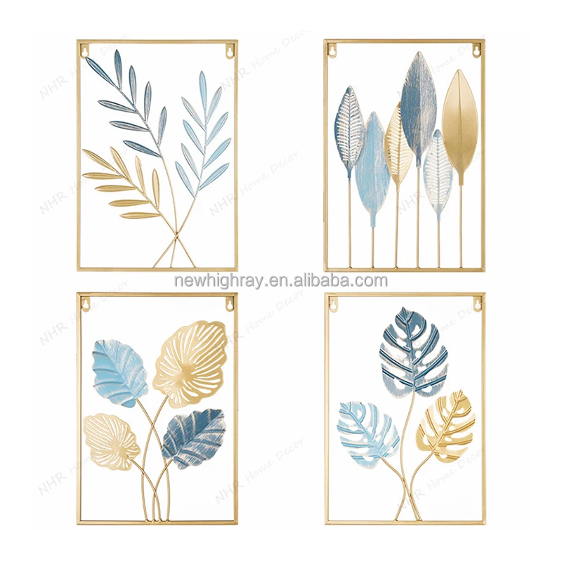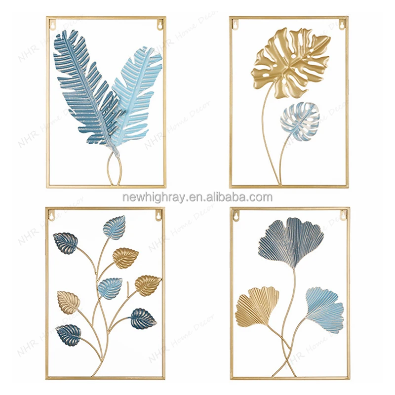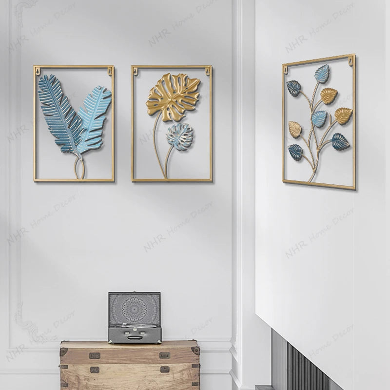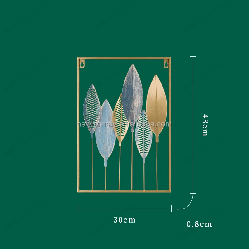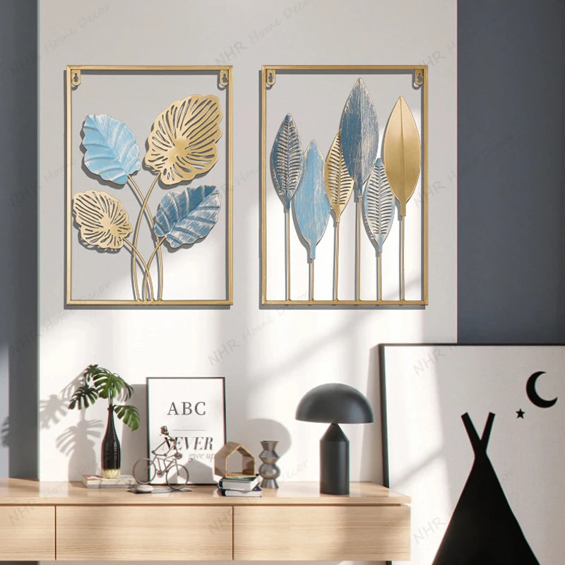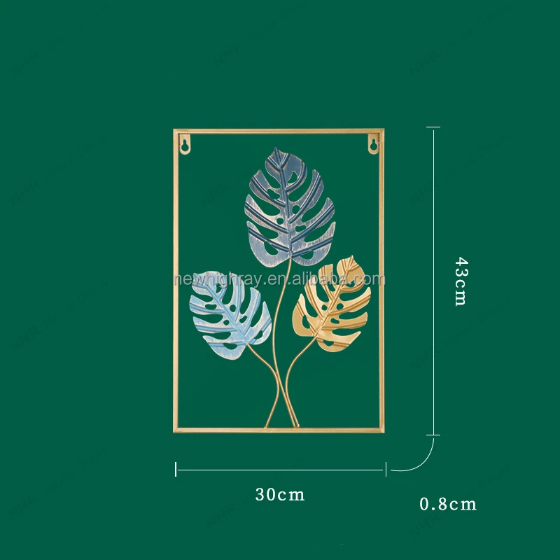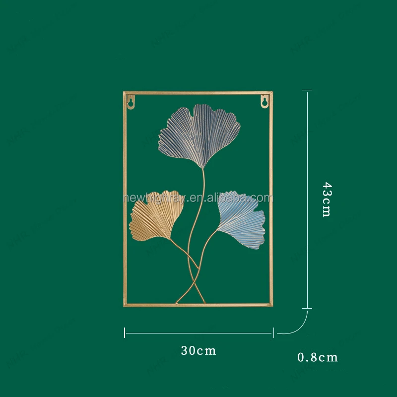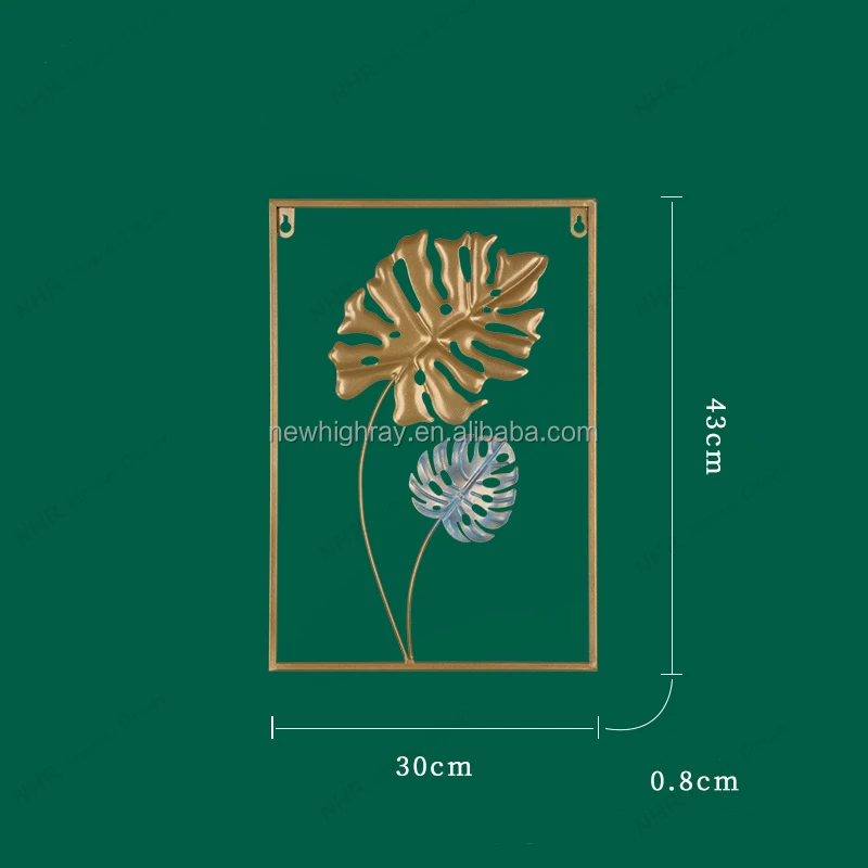 Living room hanging wall decor Home interior display Metal Wall Art Decor Creative Golden Leaf Wrought Iron decor