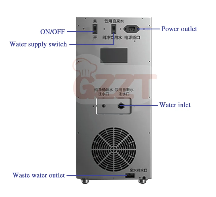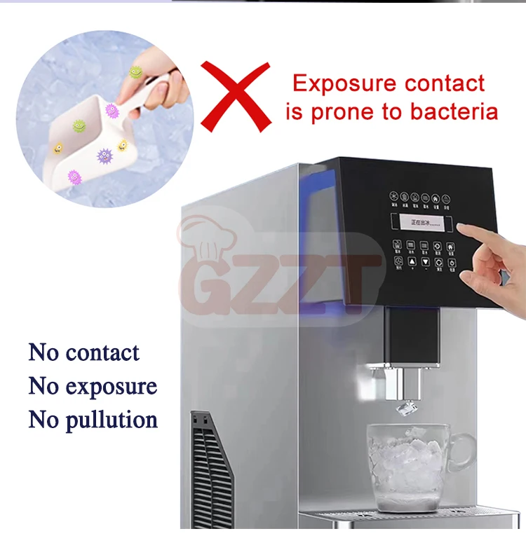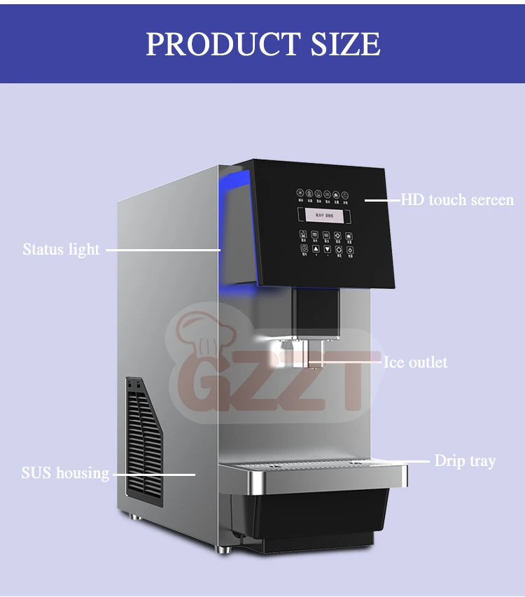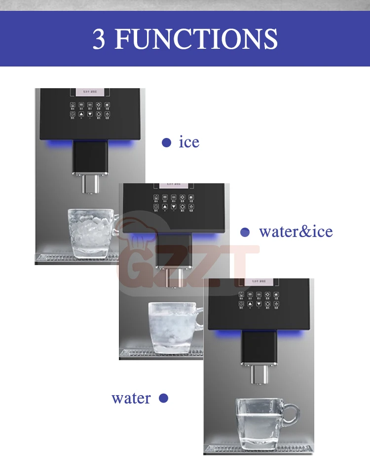 ●Continuous ice making function ●With the function of taking ice, taking ice water and taking water ●With the function of cleaning and emptying the water tank ●Pre-book ice making function ●Can set ice, ice water, water time ●There is a function to cancel the set time ●Waste water tank full alarm function ●With water shortage abnormal alarm function