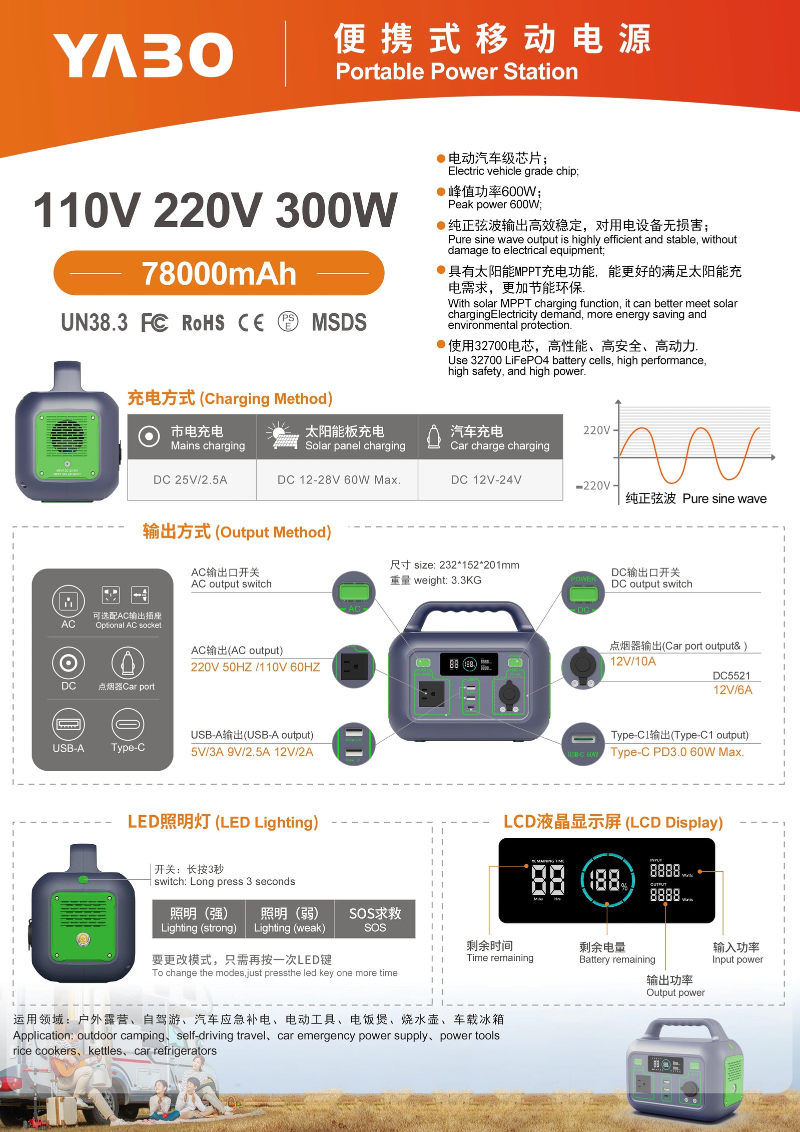 Power Station Lifepo4 Super Fast Charge 300W Home Use Portable Outdoor Solar Power Station With Solar Panel