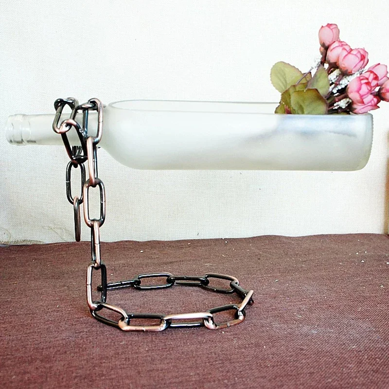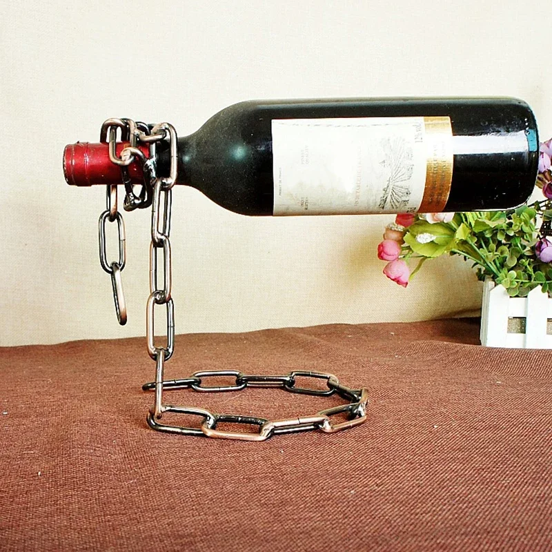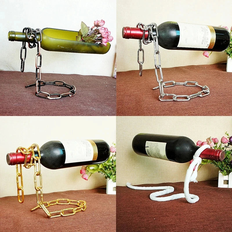 Red Wine Holder Metal Floating Creative Retro 3d Iron Chain Rope Wine Rack Home Desktop Decoration Stand Red Wine Storage Rack