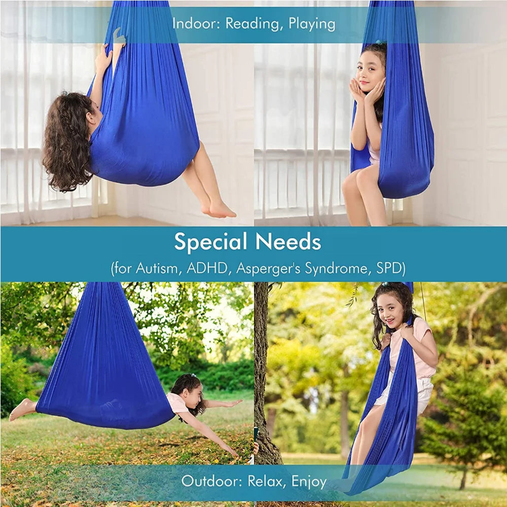 * It can now easily hold up to 440 lbs and wont stretch to the ground. Our Swaddling Sensory Toys Swing gives children a sense of calmness and blocks out unwanted sensory stimulation.