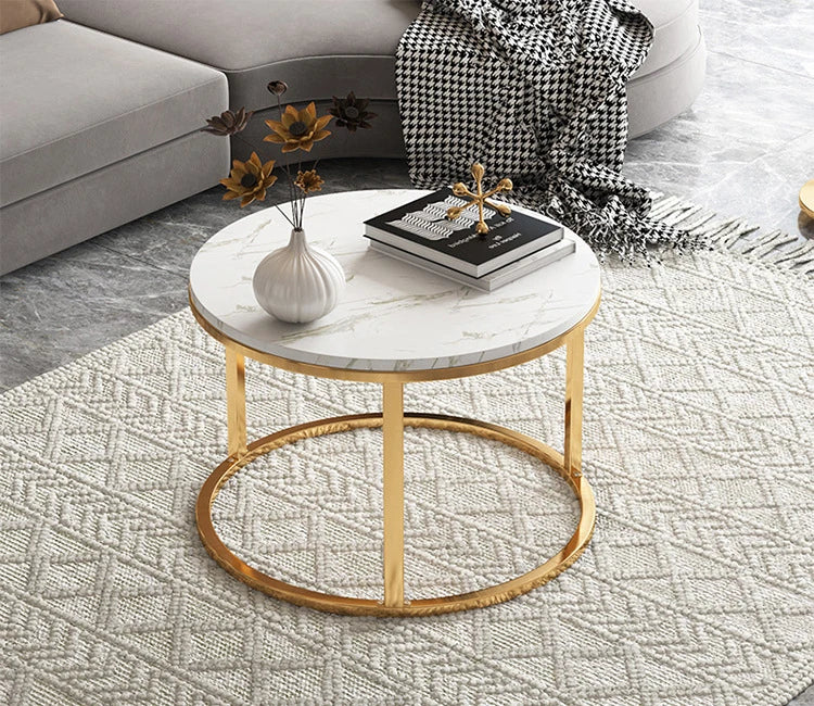 Wood Top with Marble texture 2 in 1 Coffee Tables Living Room Sofa Beside Round Coffee Tea Table Desk Combination Home Furniture