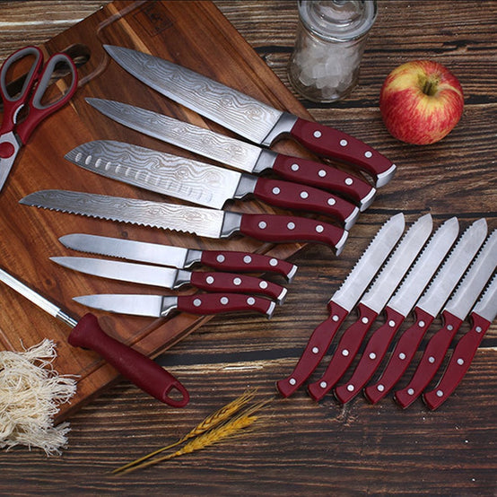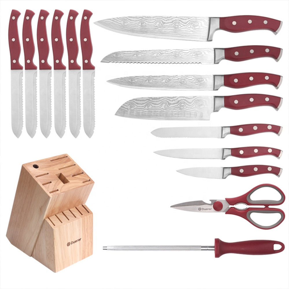 16 pcs japanese high carbon stainless steel design chefs steak cuchillos chef kitchen knife set with wooden block