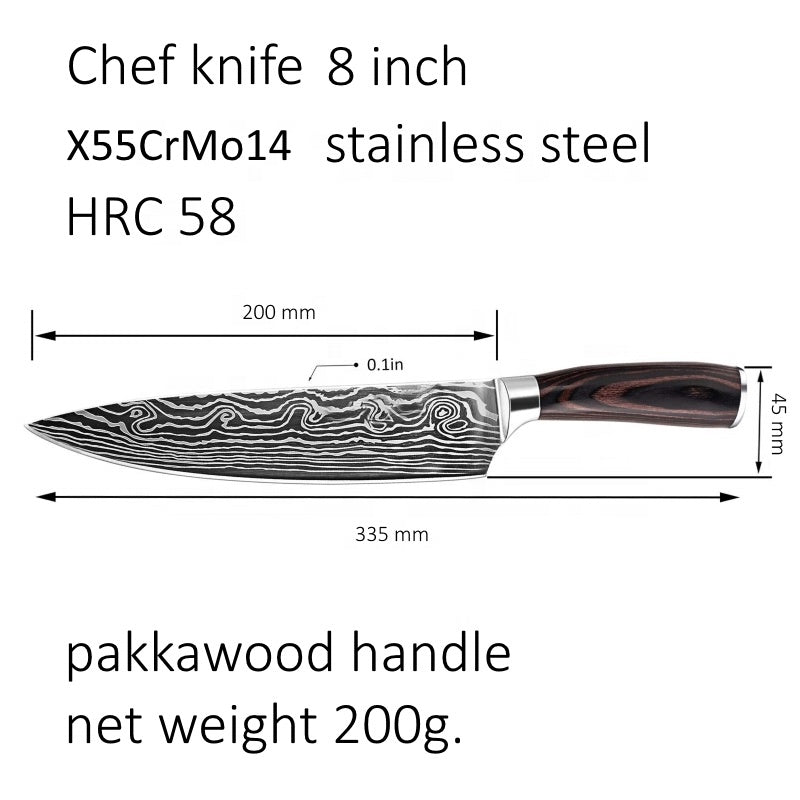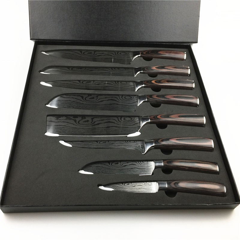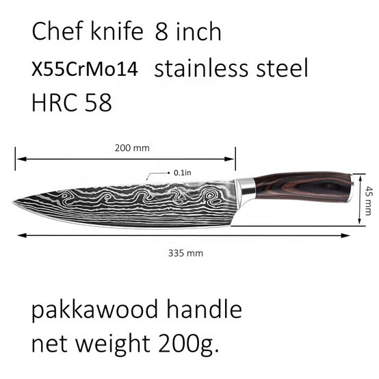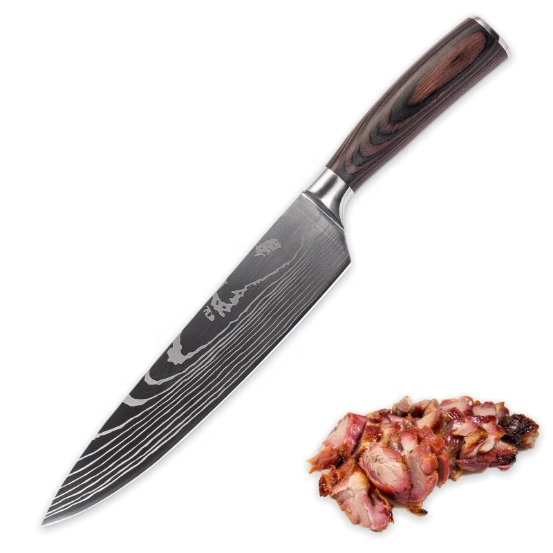 8 inch high carbon 7Cr17 stainless steel butcher cooking tools kitchenware knife Damascus laser pattern kitchen Chef knives