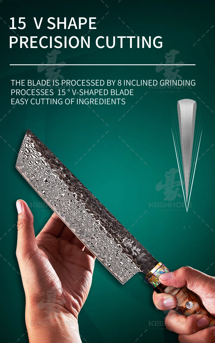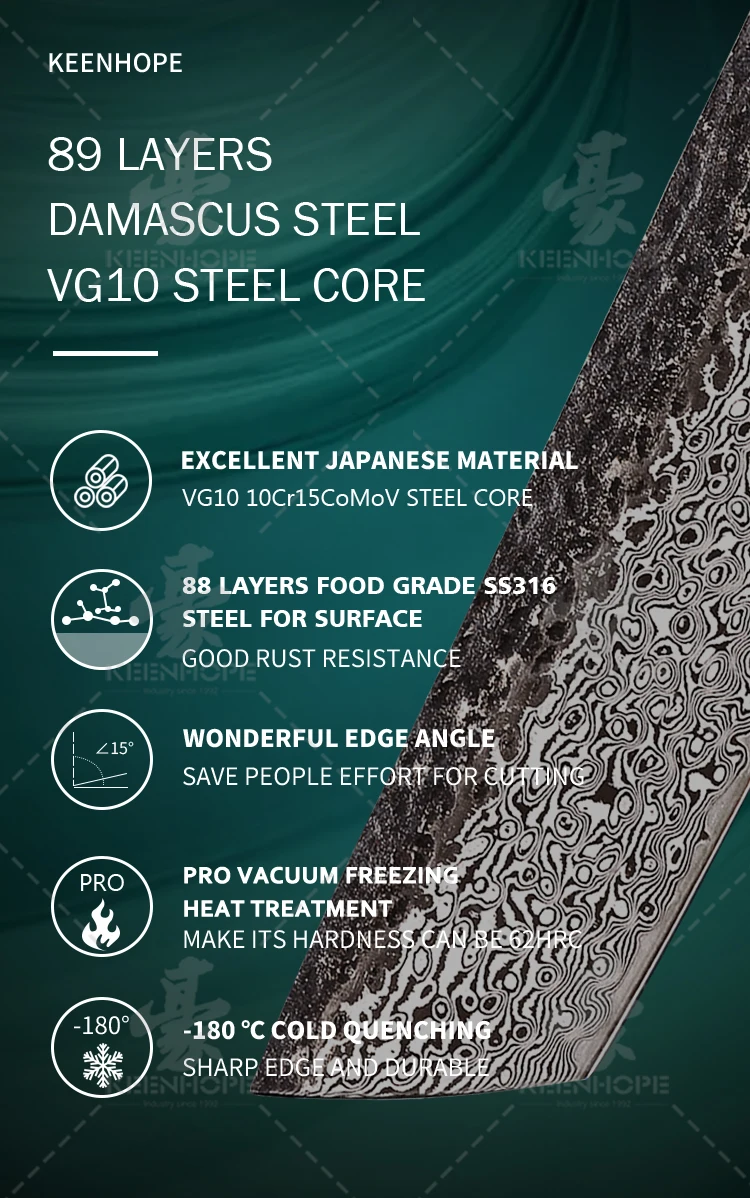 The Famous Damascus Steel With VG10(10Cr15CoMoV), Hardness Could Reach 60±1 HRC, And Include A Powerful Feature With The Anti Rust,Toughness And Durable.