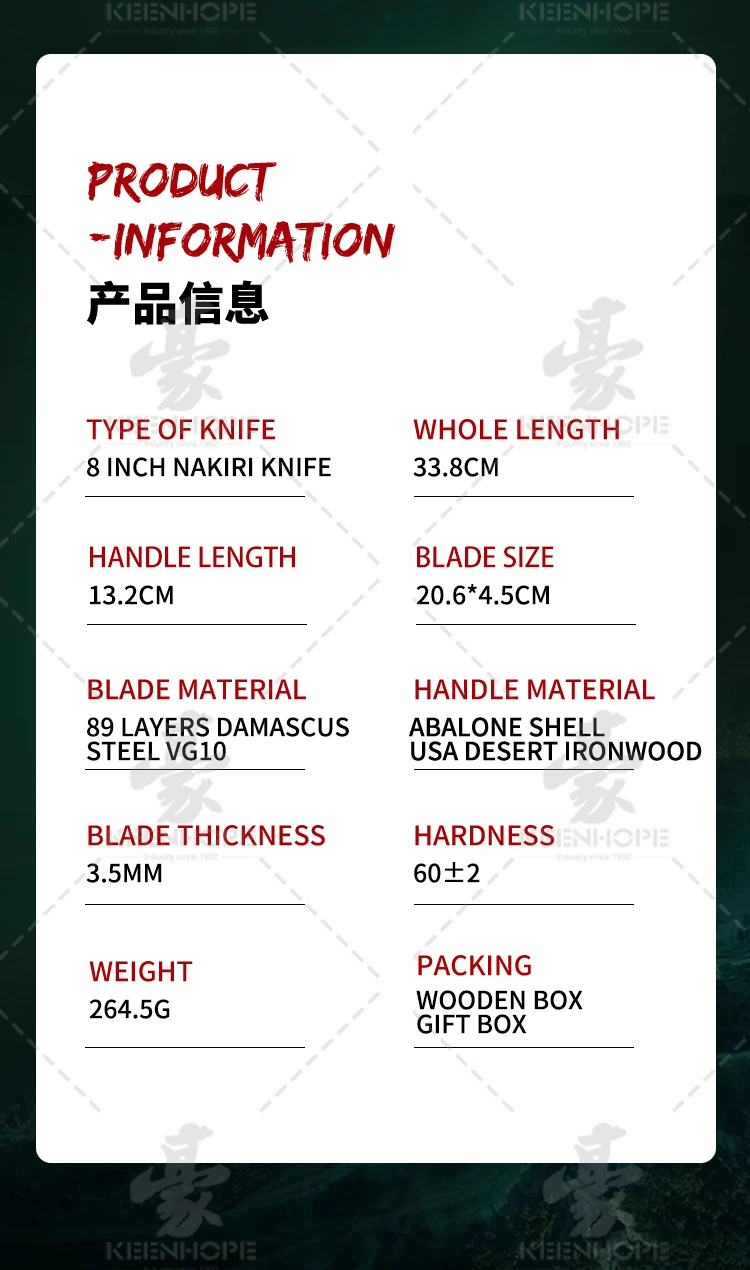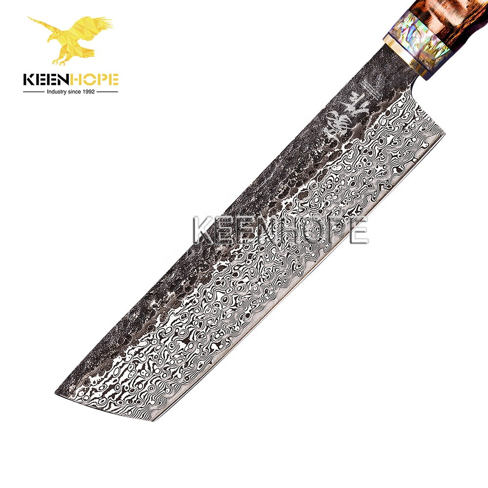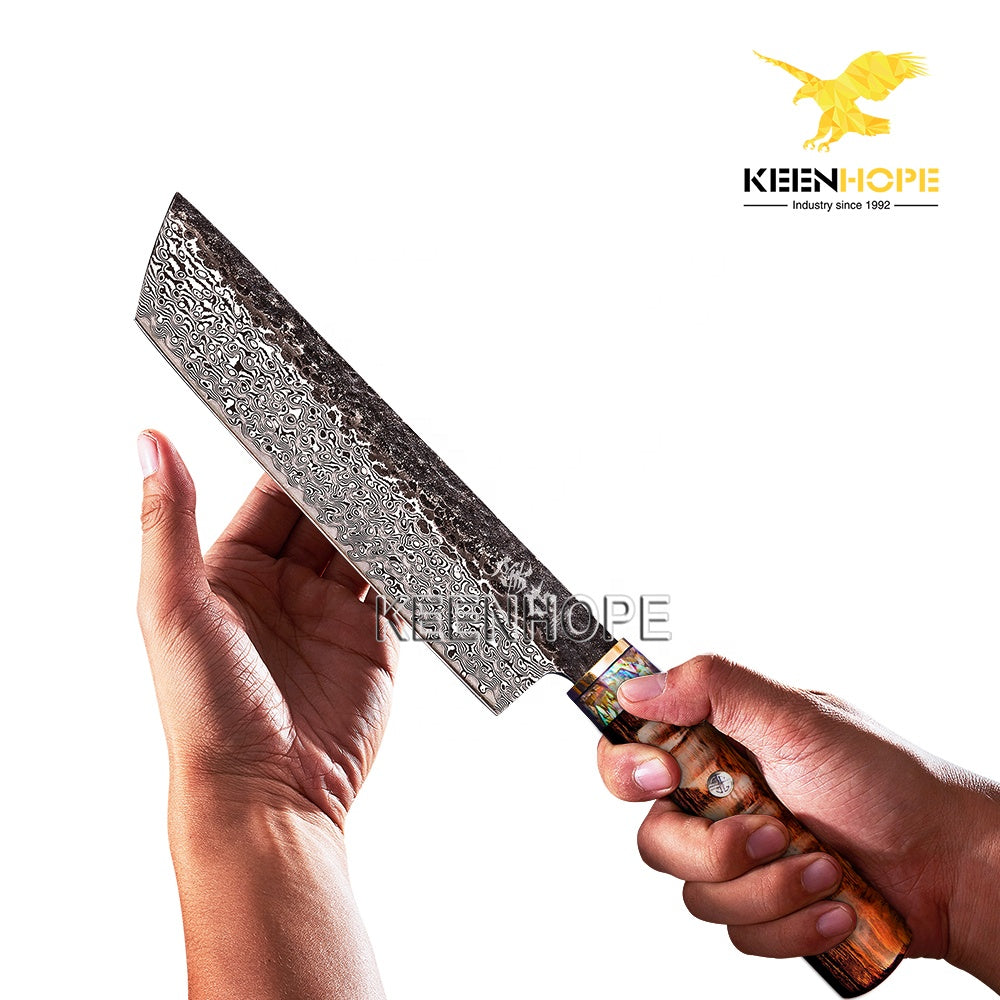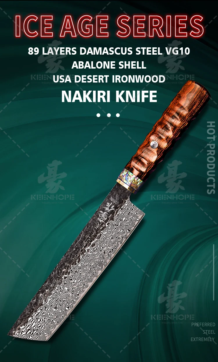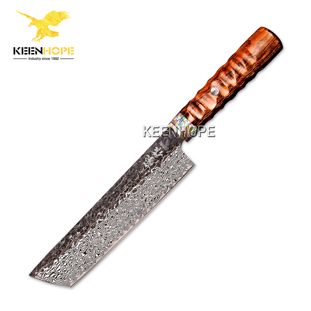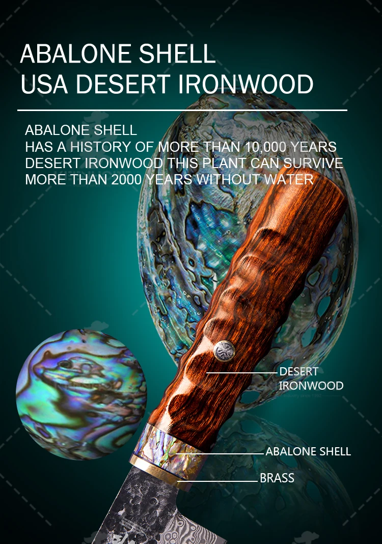 89 Layers Damascus Steel Knife 8 Inch Nakiri knife VG10 Core Brass Abalone Shell USA Desert Ironwood Handle Japanese Chef Knife