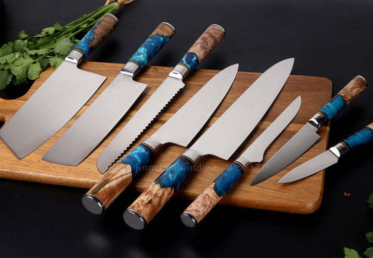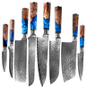 Baichang hot sale Chef Knife sets with Blue Resin Handle Carbon Steel Kitchen knife Damascus Knife set