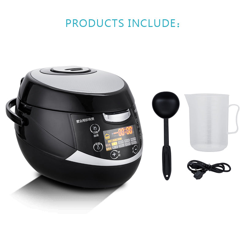 Commercial tapioca cooker: 1, 5 liters large capacity, can cook up to 500g-1kg tapioca balls 2, precise temperature control, to ensure that the pearl is fully boiling 3, micro-pressure technology, efficient and uniform heating, reducing water loss 4, the operation is simple and convenient, the cooking process is easy.