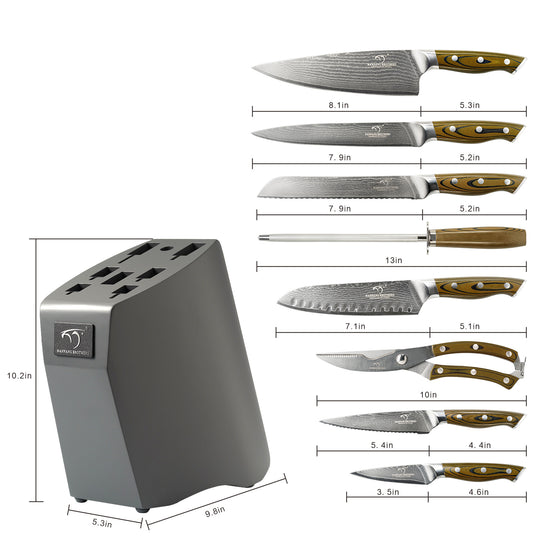 Chef knife, santoku knife, bread knife, slicer knife, utility knife, paring knife, steak knife, shears, sharpener/ can be customized