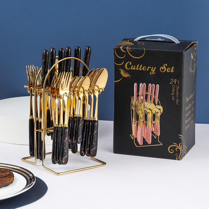 Stainless Steel 24 Piece Set Rack Ceramic Handle Knife Fork Spoon Gift Box Set Western Food Nordic Style cutlery set