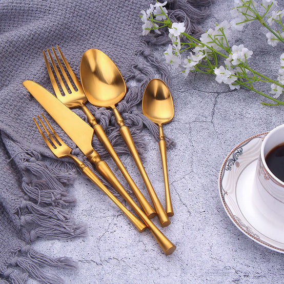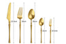 Specifications: main table knife, main table fork, main table spoon, tea spoon, tea fork, 2-piece knife and fork set, 3-piece knife, fork and spoon, 5-piece set