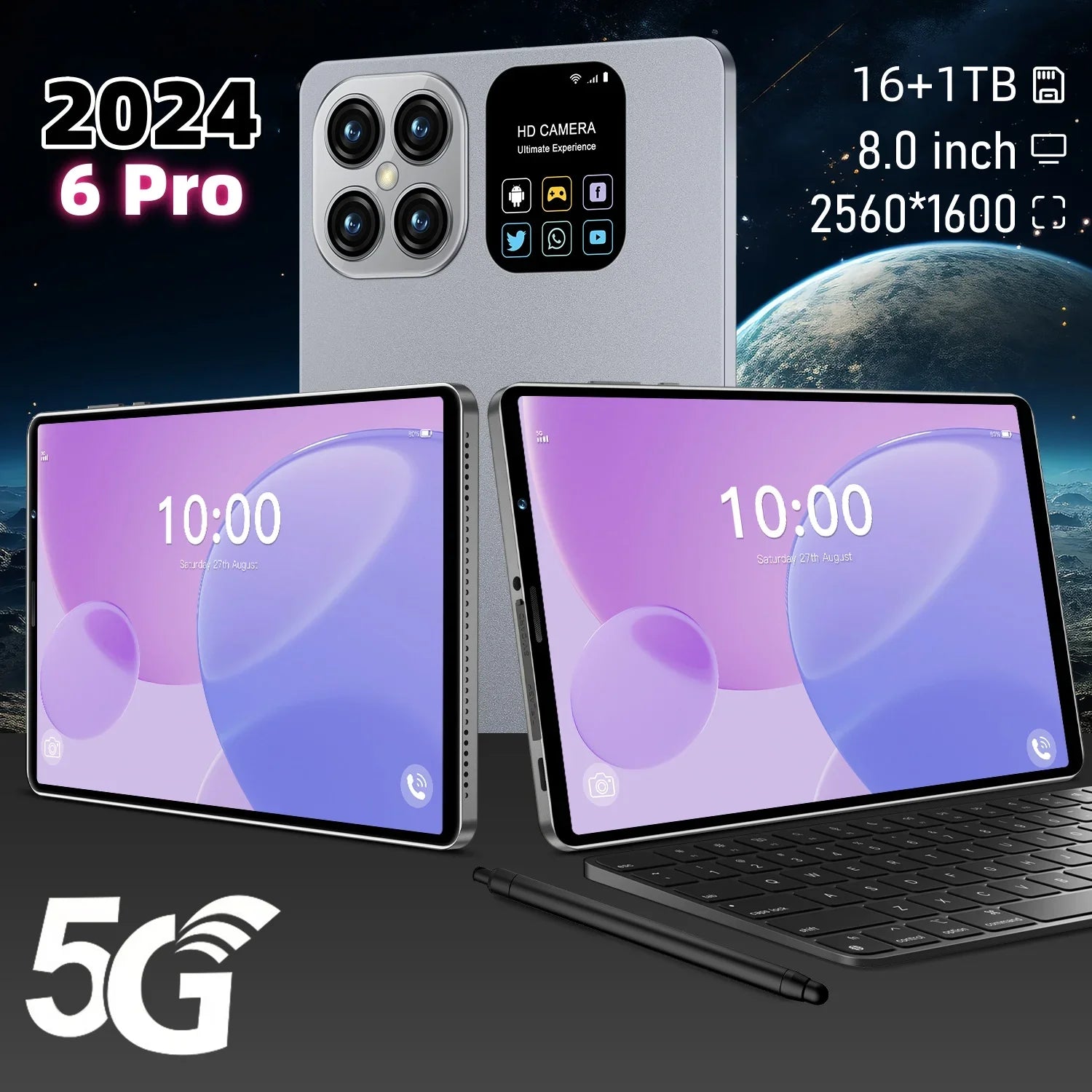 2024 Tablet Android Pad 6 Pro 8.0 Inch HD 16G+1TB Global Tablette With Keyboard For Laptop 5G Dual SIM Card WIFI Tablets PC