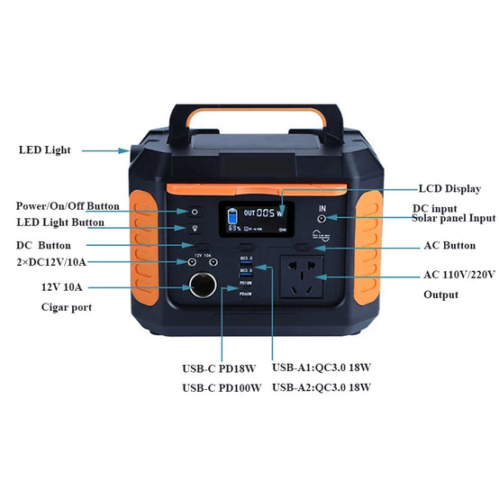500W AC Power Bank Power Station 124800mAh Portable battery pack Laptop PowerBank with 110V 220V 230V AC OUTLET Flash Light
